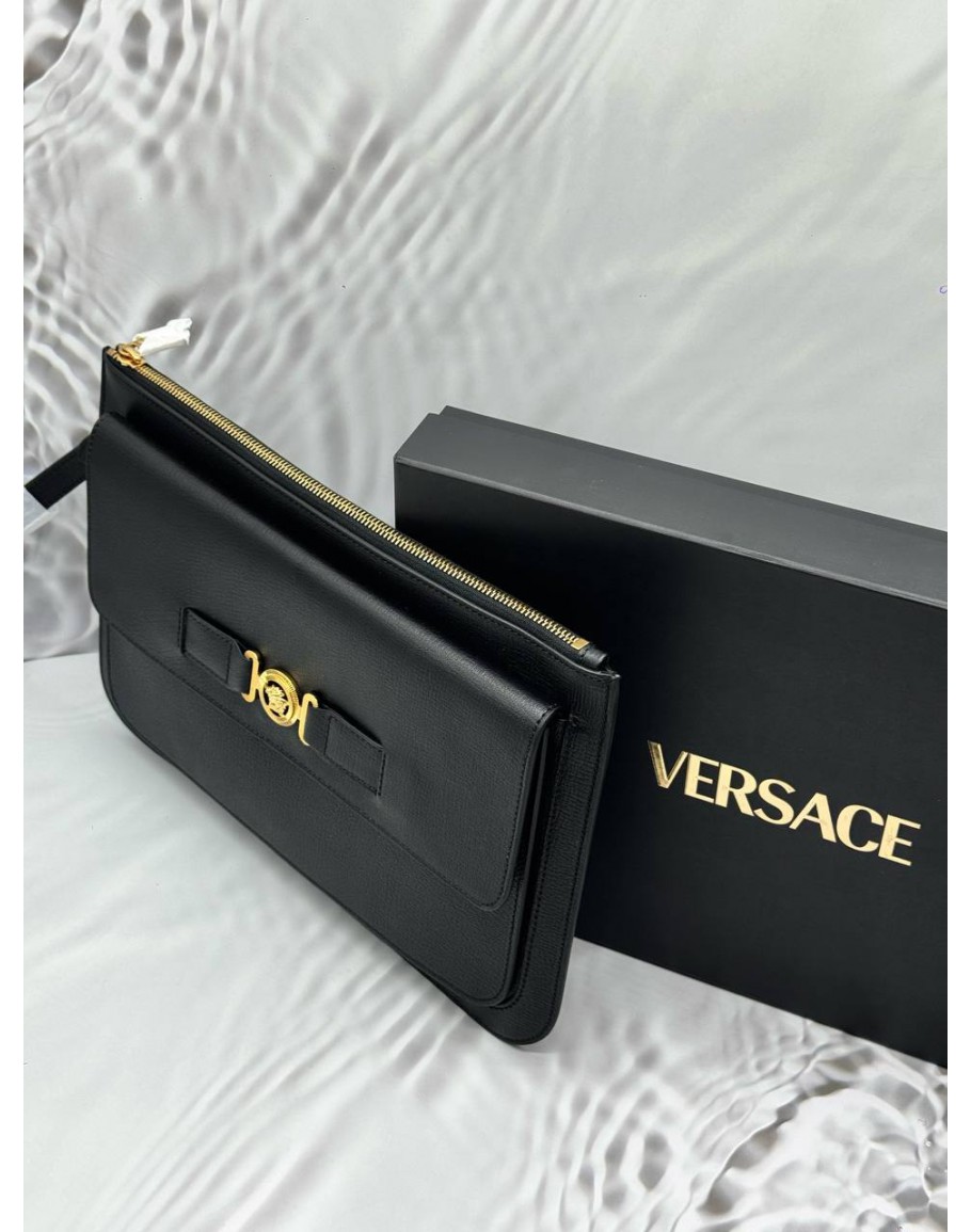 Product Code: (UNUSED) VERSACE MEDUSA BIGGIE CLUTCH IN BLACK LEATHER