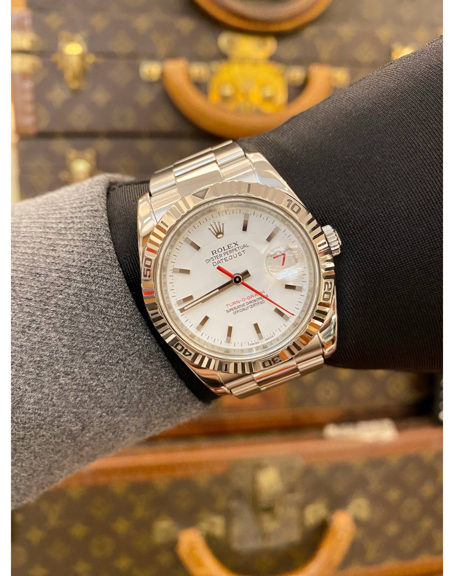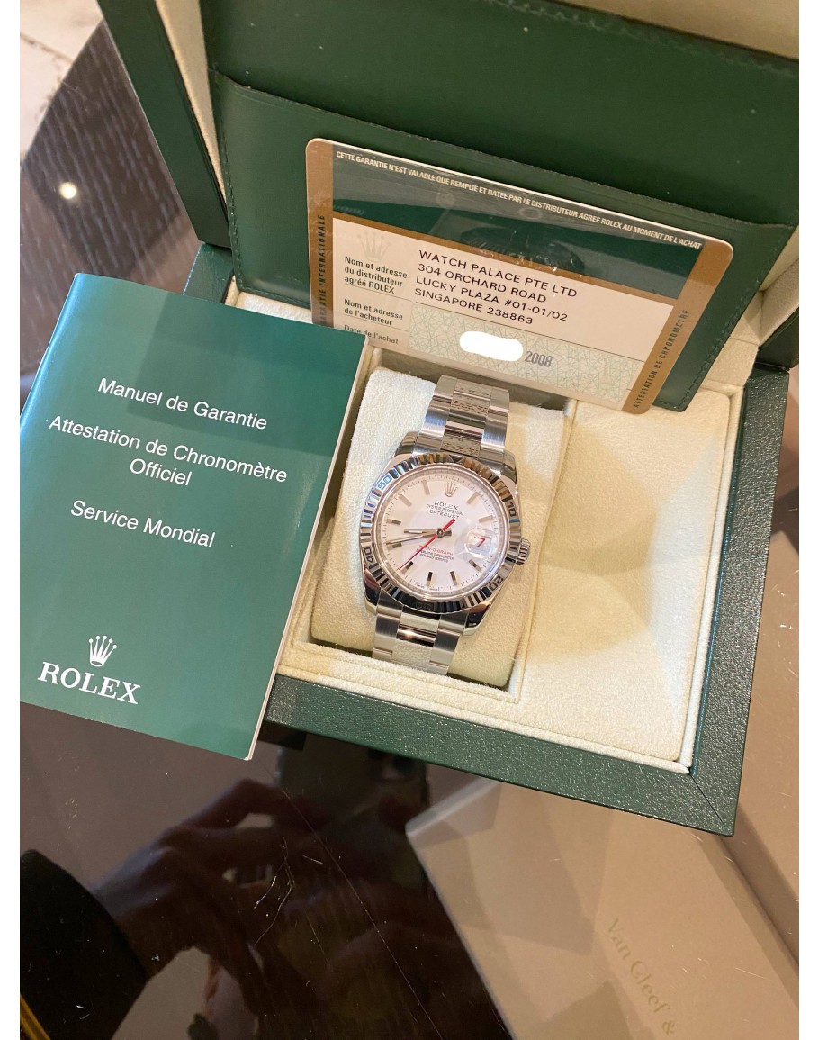 Tags: 2008 ROLEX DATEJUST TURN-O-GRAPH RED HAND REF 116264 WHITE DIAL 36MM AUTOMATIC WATCH -FULL SET-
