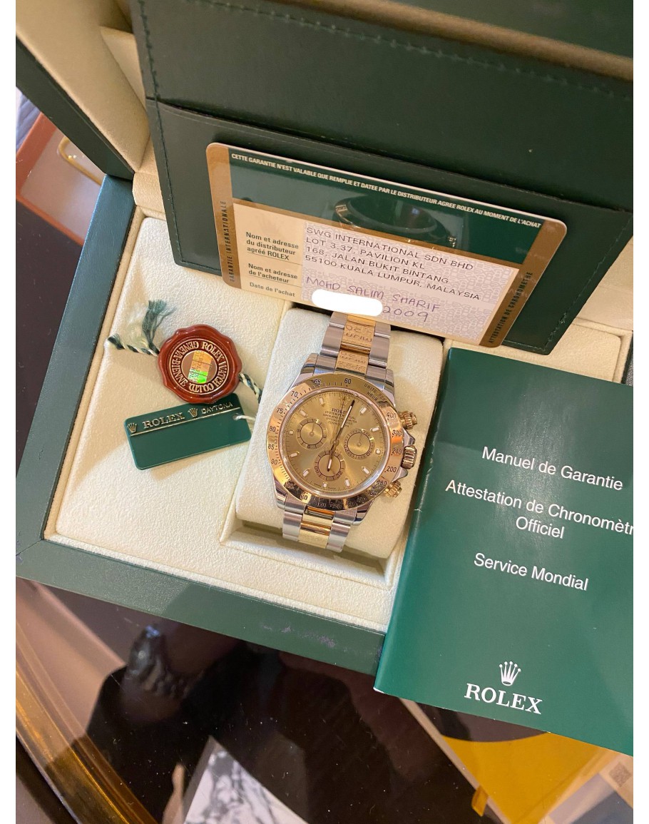 2009 ROLEX DAYTONA COSMOGRAPH HALF 18K 750 YELLOW GOLD REF 116523 CHAMPAGNE DIAL 40MM AUTOMATIC WATCH -FULL SET-