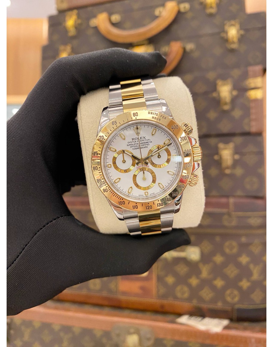 2011 ROLEX DAYTONA COSMOGRAPH HALF 18K 750 YELLOW GOLD REF 116523 WHITE DIAL 40MM AUTOMATIC WATCH -FULL SET-