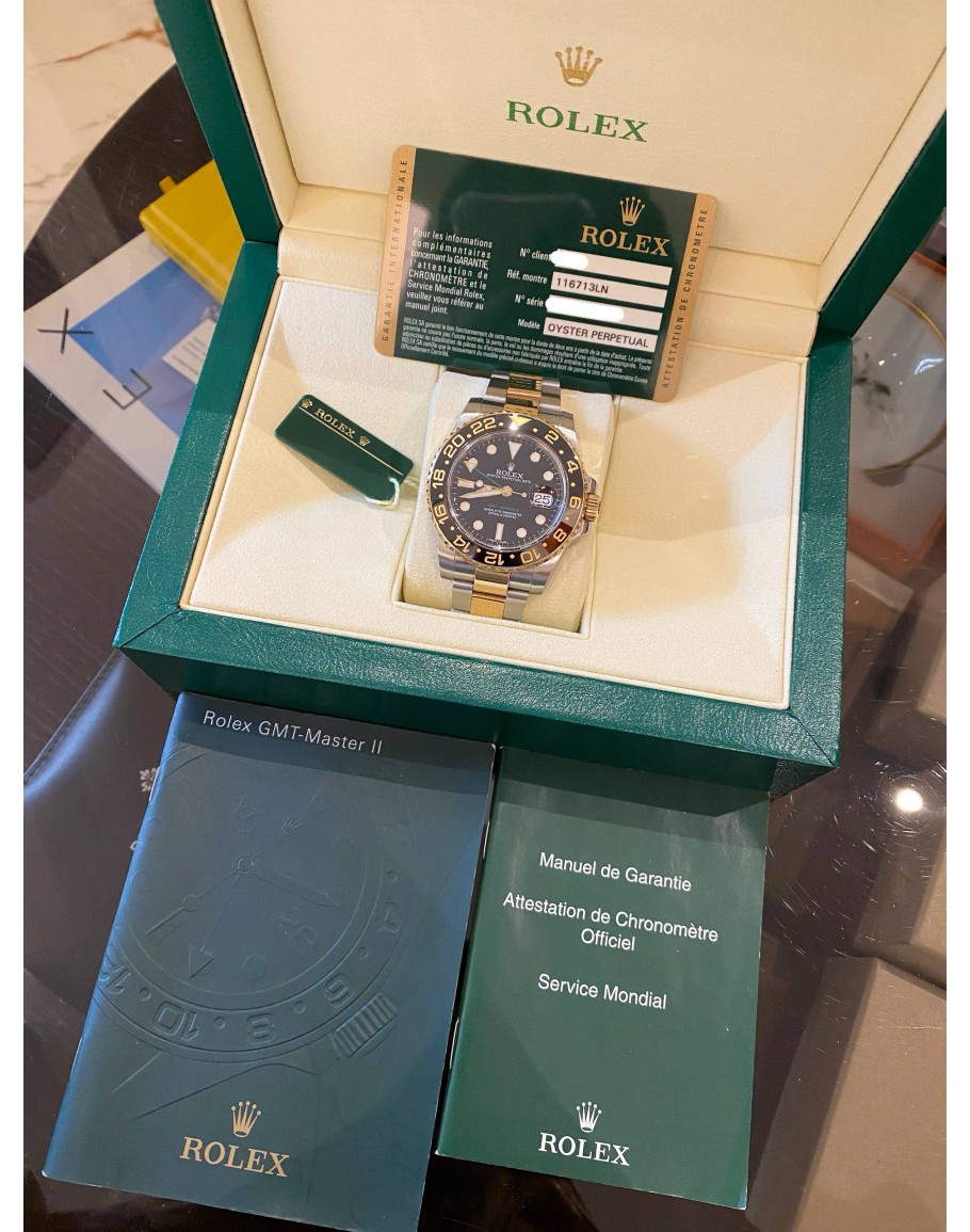 2015 ROLEX GMT-MASTER II HALF 18K 750 YELLOW GOLD REF 116713 BLACK DIAL 40MM AUTOMATIC WATCH -FULL SET-