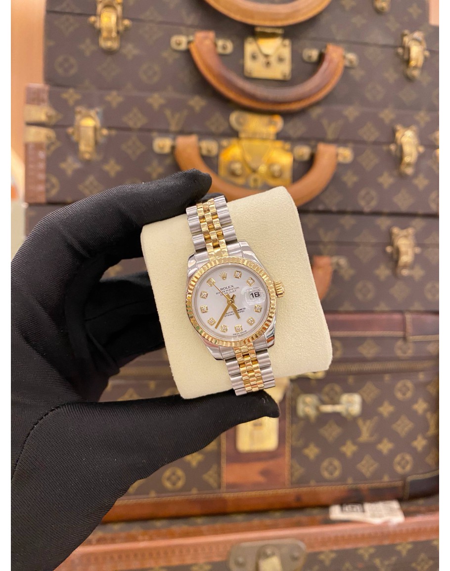 2016 ROLEX LADY DATEJUST JUBILEE HALF 18K 750 YELLOW GOLD REF 179173 WHITE DIAMOND DIAL 26MM AUTOMATIC WATCH