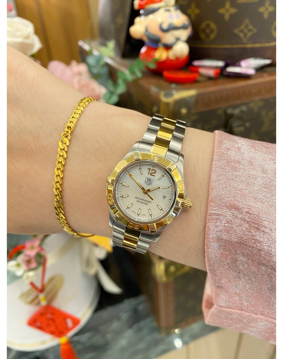 Tags: 2016 TAG HEUER AQUARACER LADY REF WAF1424 WHITE MOTHER OF PEARL DIAL 27MM QUARTZ WATCH -FULL SET-