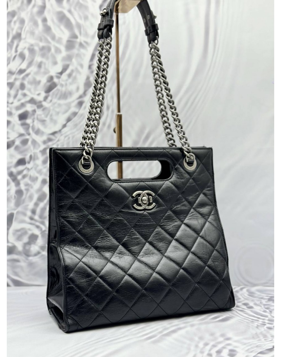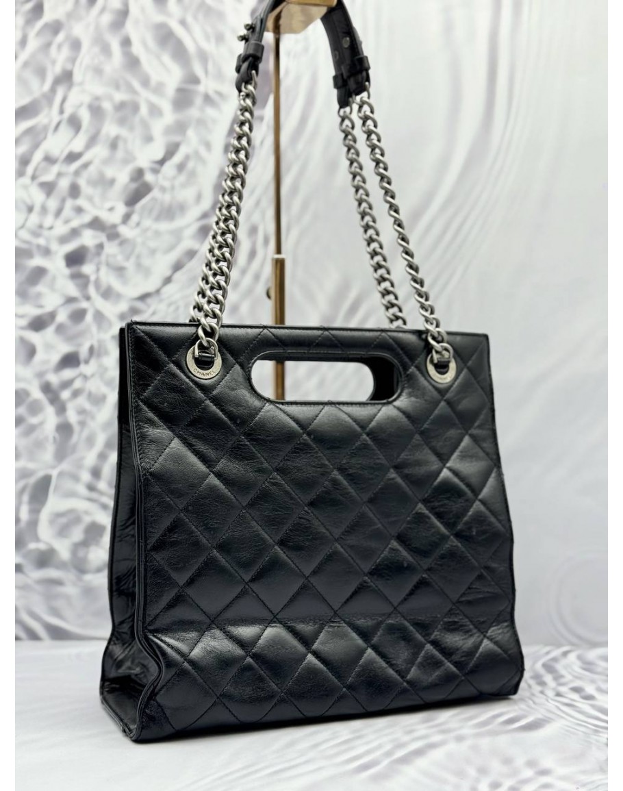 Tags:  2017 CHANEL BOY TOTE BAG IN BLACK AGED CALFSKIN LEATHER