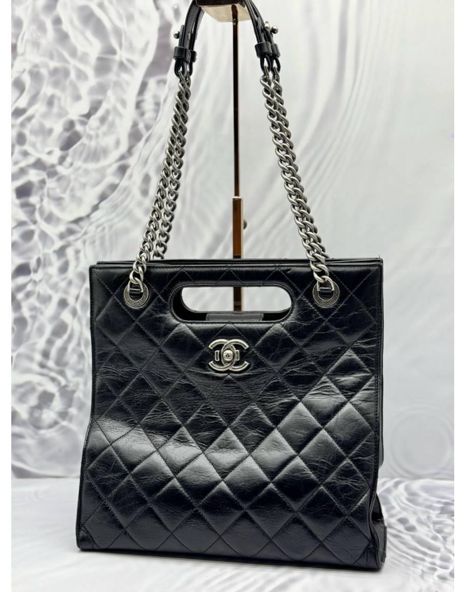 2017 CHANEL BOY TOTE BAG IN BLACK AGED CALFSKIN LEATHER
