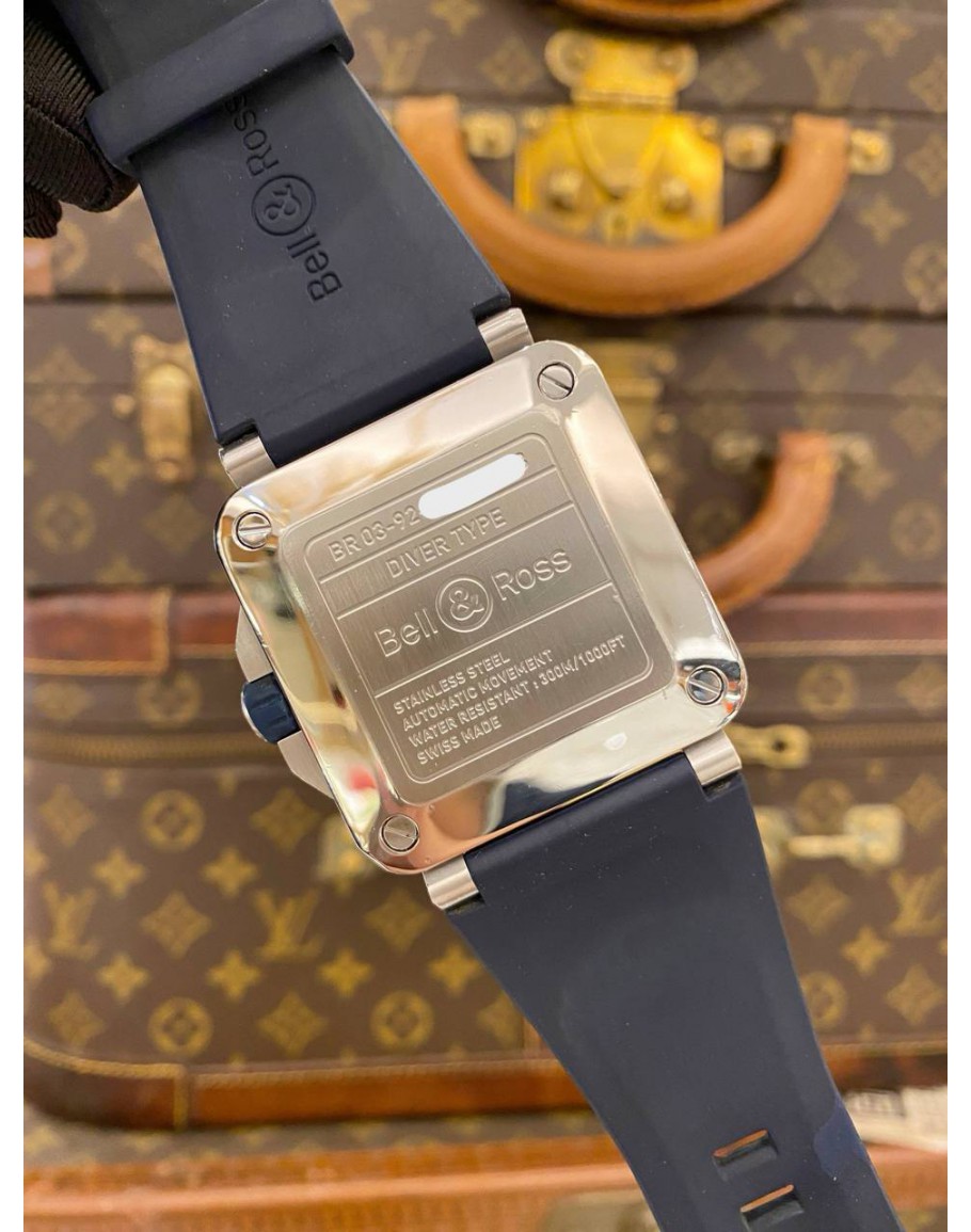 (PRE-OWNED) -FULL SET- GENDER : MEN PRISTINE CONDITION : 9.5/10 BRAND : BELL & ROSS YEAR : 2021 MODEL : BR 03-92 DIVER BLUE CASE DIAMETER : 42MM MOVEMENT : AUTOMATIC BEZEL MATERIAL : BLUE CERAMIC CASE MATERIAL : STAINLESS STEEL BRACELET MATERIAL : RUBBER CLASP : PIN BUCKLE CLASP MATERIAL : STAINLESS STEEL DIAL : BLUE COMES WITH CERTIFICATE CARD, CANVAS STRAP, TOOLS, BOOKLETS & BOX
