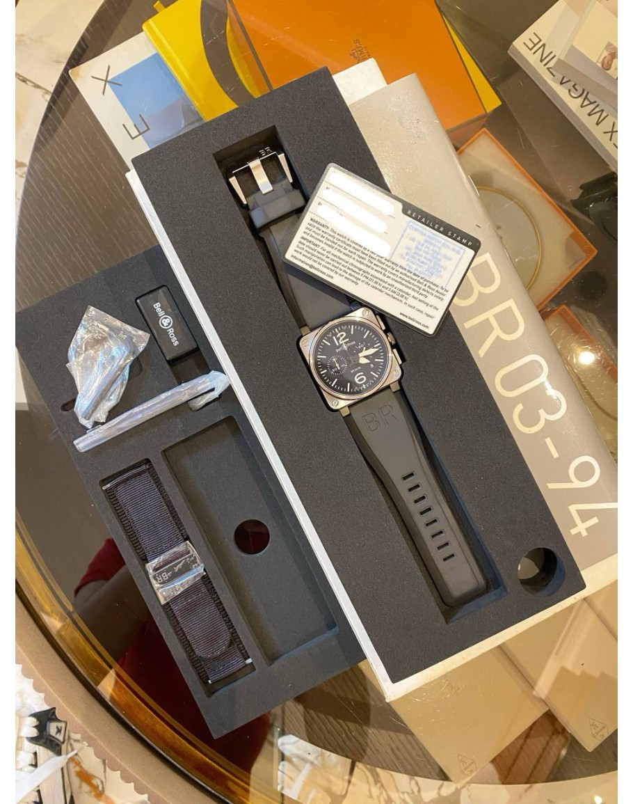 2022 BELL & ROSS BR 03-94 STEEL AVIATION CHRONOGRAPH REF BR0394 BLACK DIAL 42MM AUTOMATIC WATCH -FULL SET-