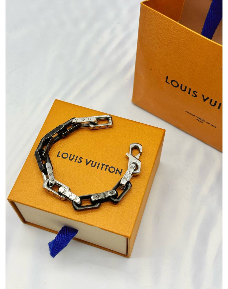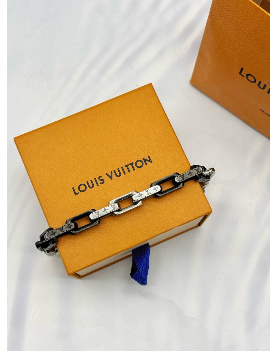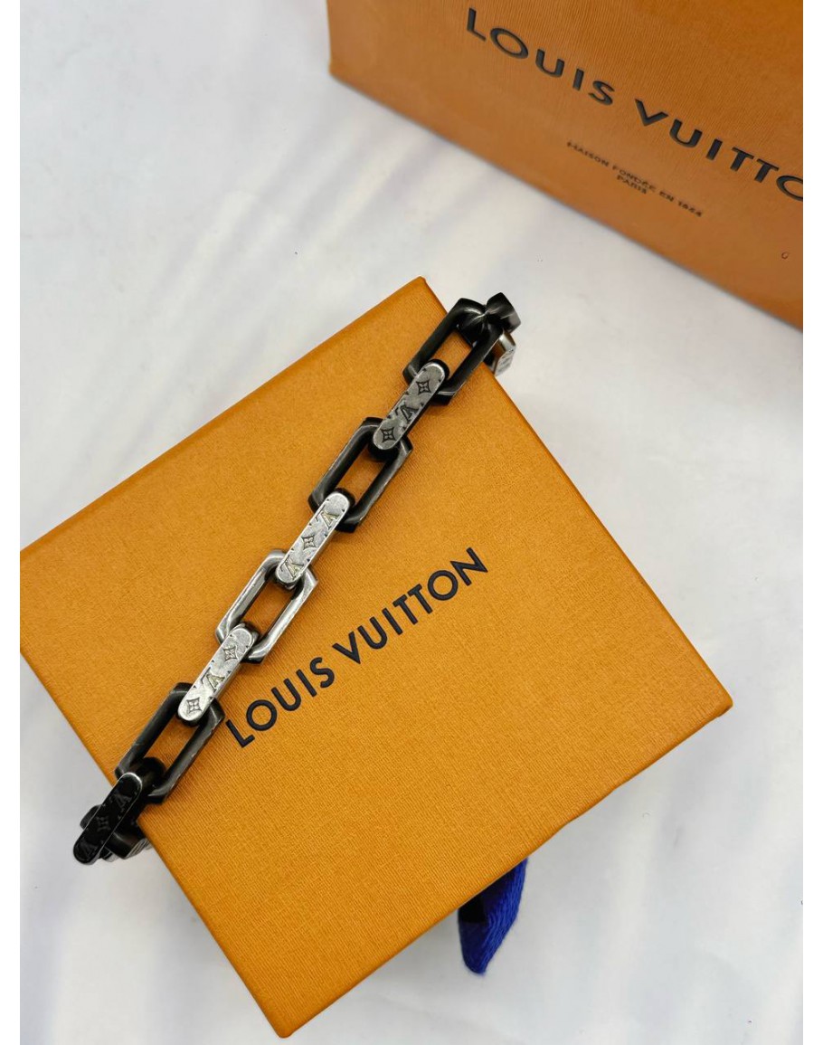 Tags: 2025 LOUIS VUITTON MONOGRAM CHAIN BRACELET 19CM IN SILVER WITH BLACK STAINLESS STEEL