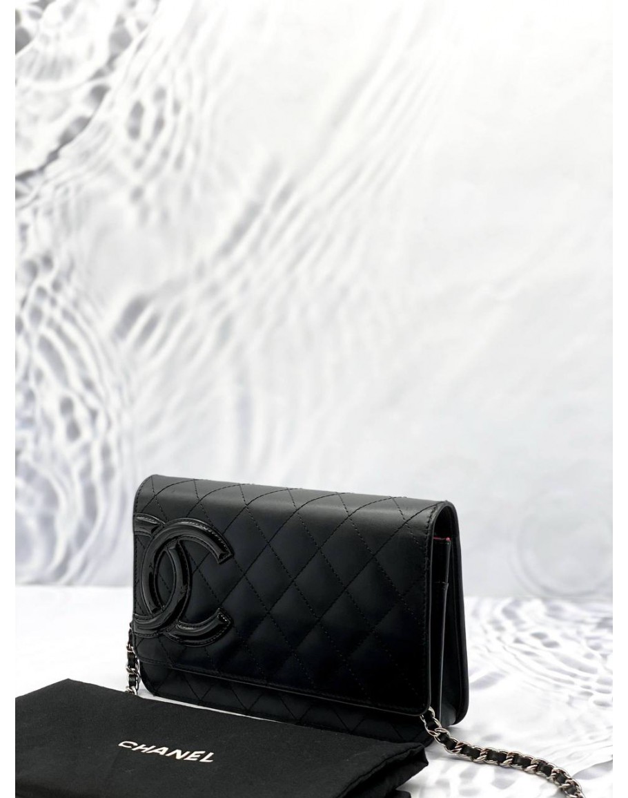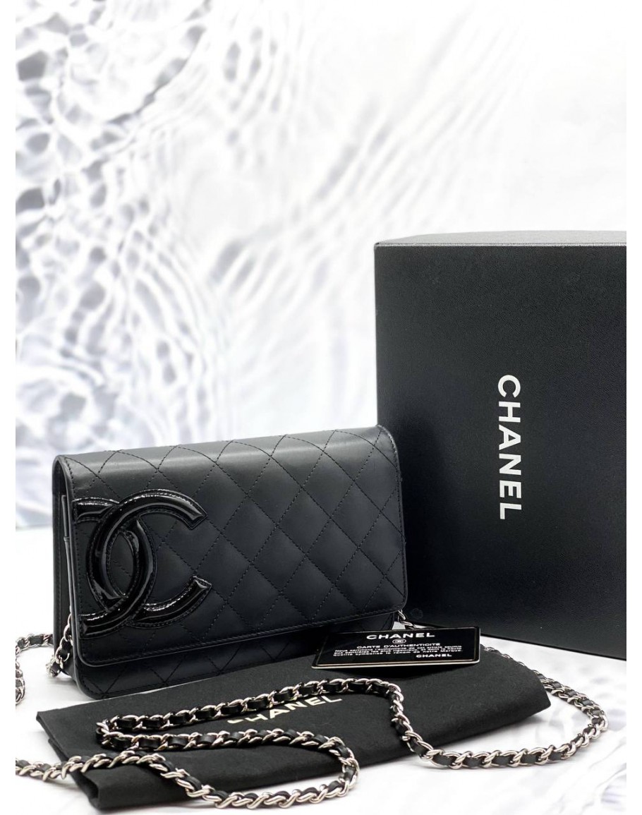 Tags: (LIKE NEW) CHANEL CAMBON LINE WALLET ON CHAIN IN BLACK LAMBSKIN WITH PATENT LEATHER -FULL SET-