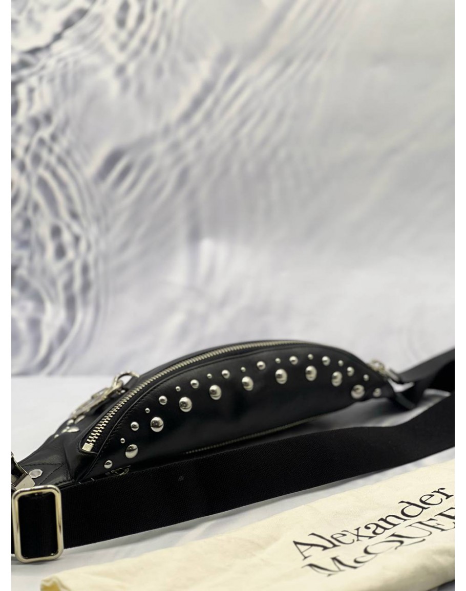 Tags:  ALEXANDER MCQUEEN HARNESS STUDDED BELT BAG IN BLACK CALFSKIN LEATHER
