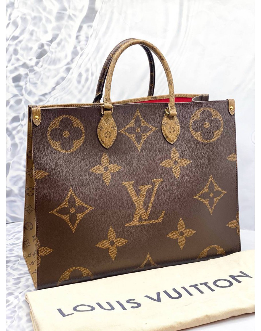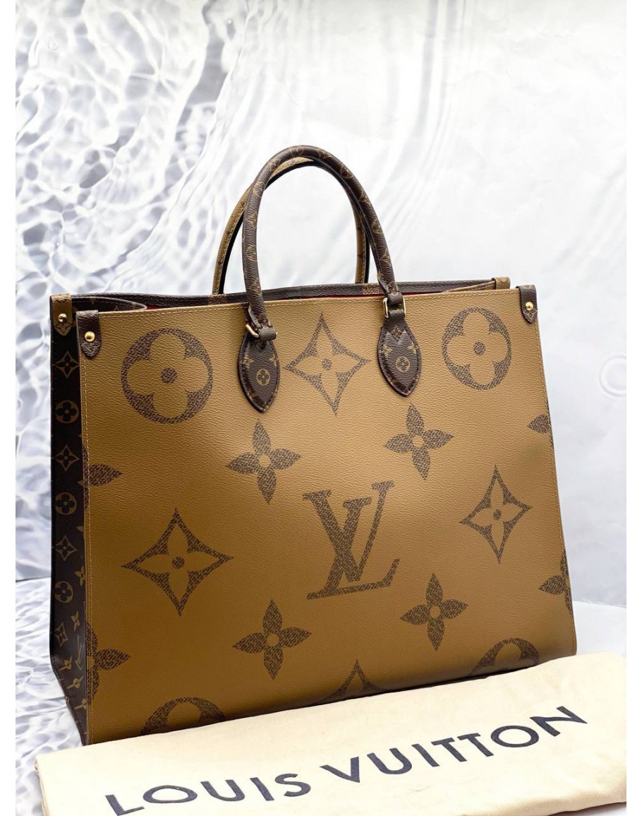 (LIKE NEW) LOUIS VUITTON ON THE GO GM IN BROWN MONOGRAM REVERSE CANVAS -FULL SET-