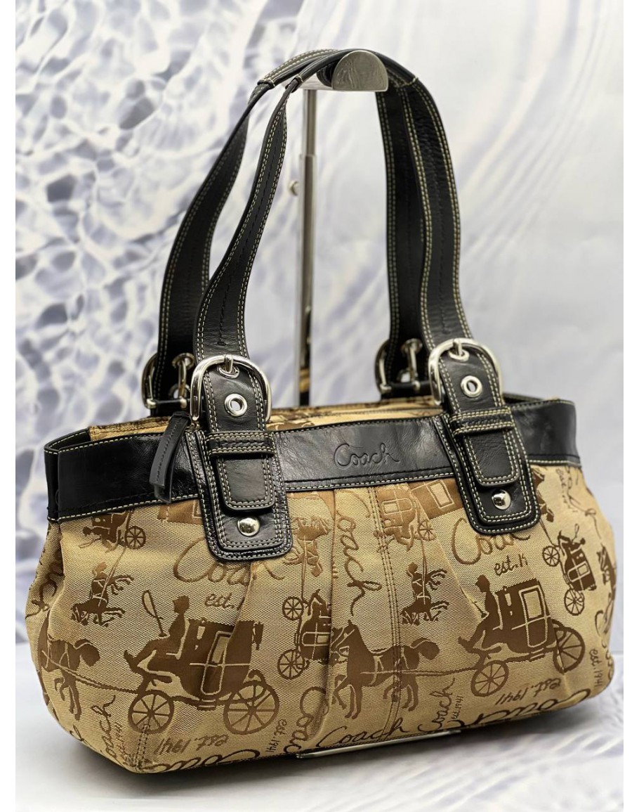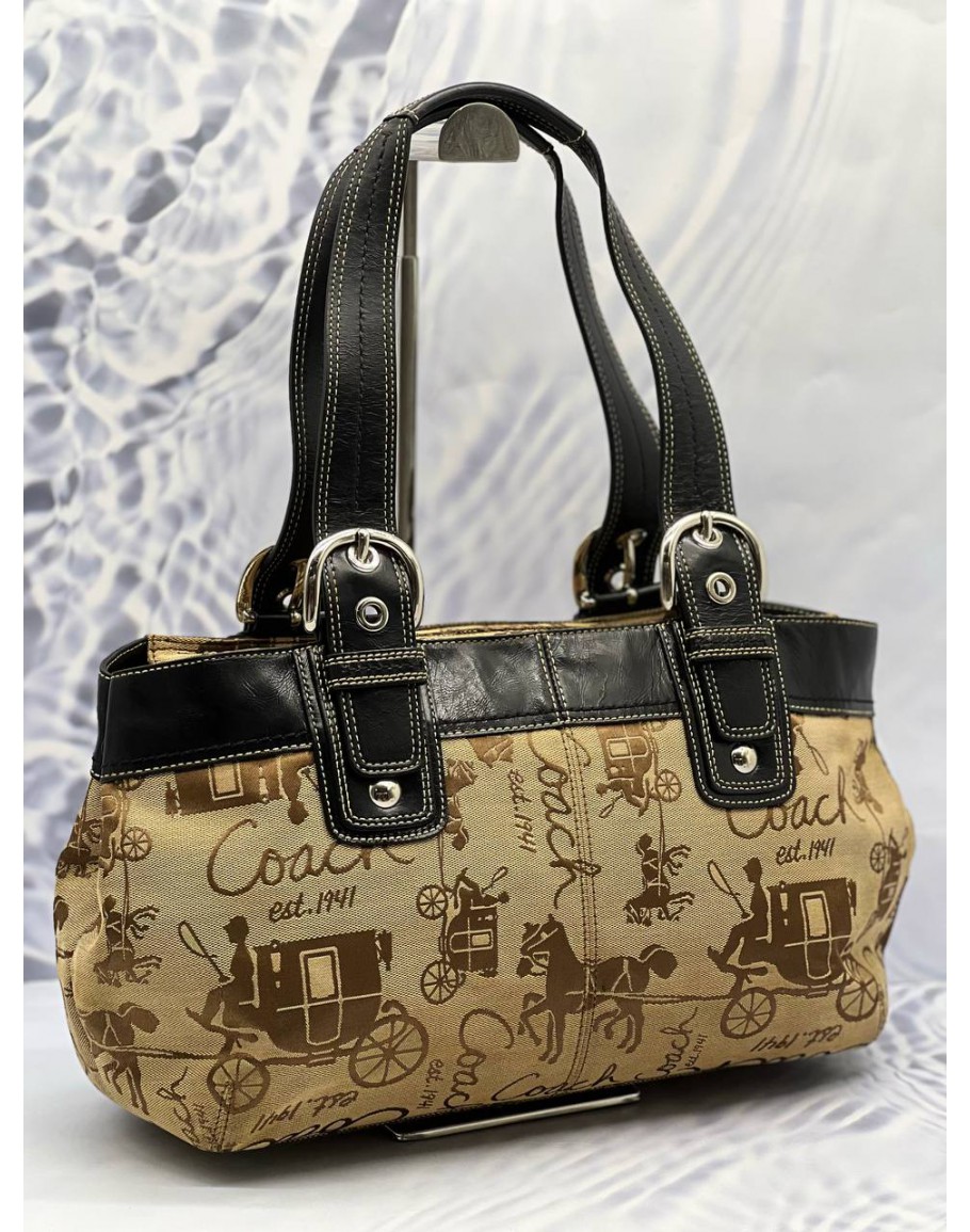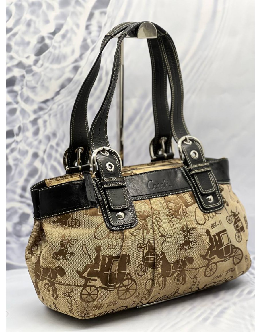 Tags: COACH SOHO OPTIC HORSE AND CARRIAGE SHOULDER BAG IN KHAKI CANVAS WITH BLACK LEATHER