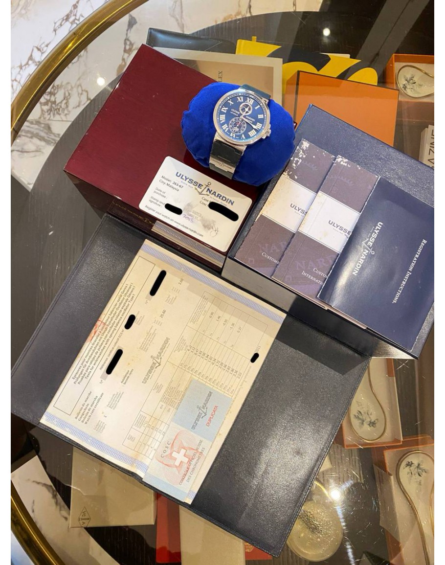 Tags:  (LIKE NEW) 2013 ULYSSE NARDIN MARINE CHRONOMETER REF 263-67 BLUE ROMAN NUMERALS DIAL 43MM AUTOMATIC WATCH -FULL SET-