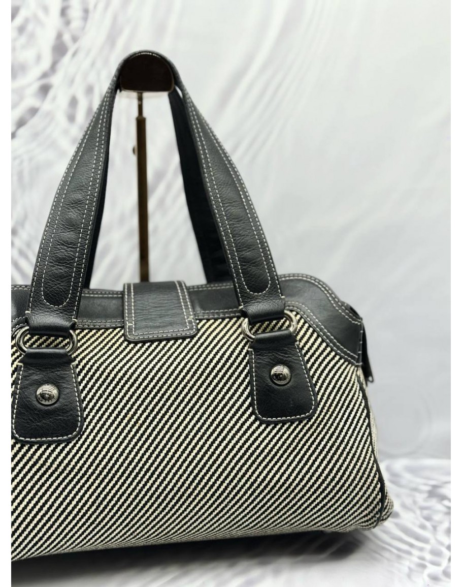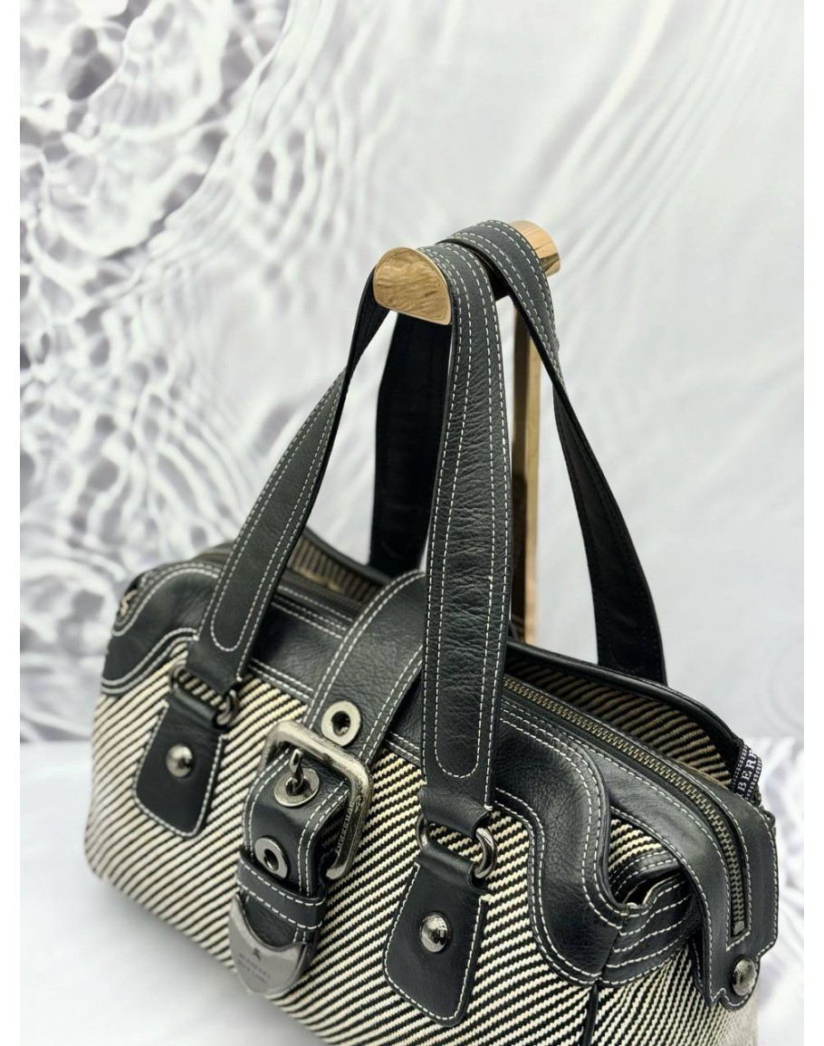 (RAYA PROMO) BURBERRY BLUE LABEL HANDBAG IN BLACK AND WHITE WOVEN FABRIC WITH BLACK LEATHER