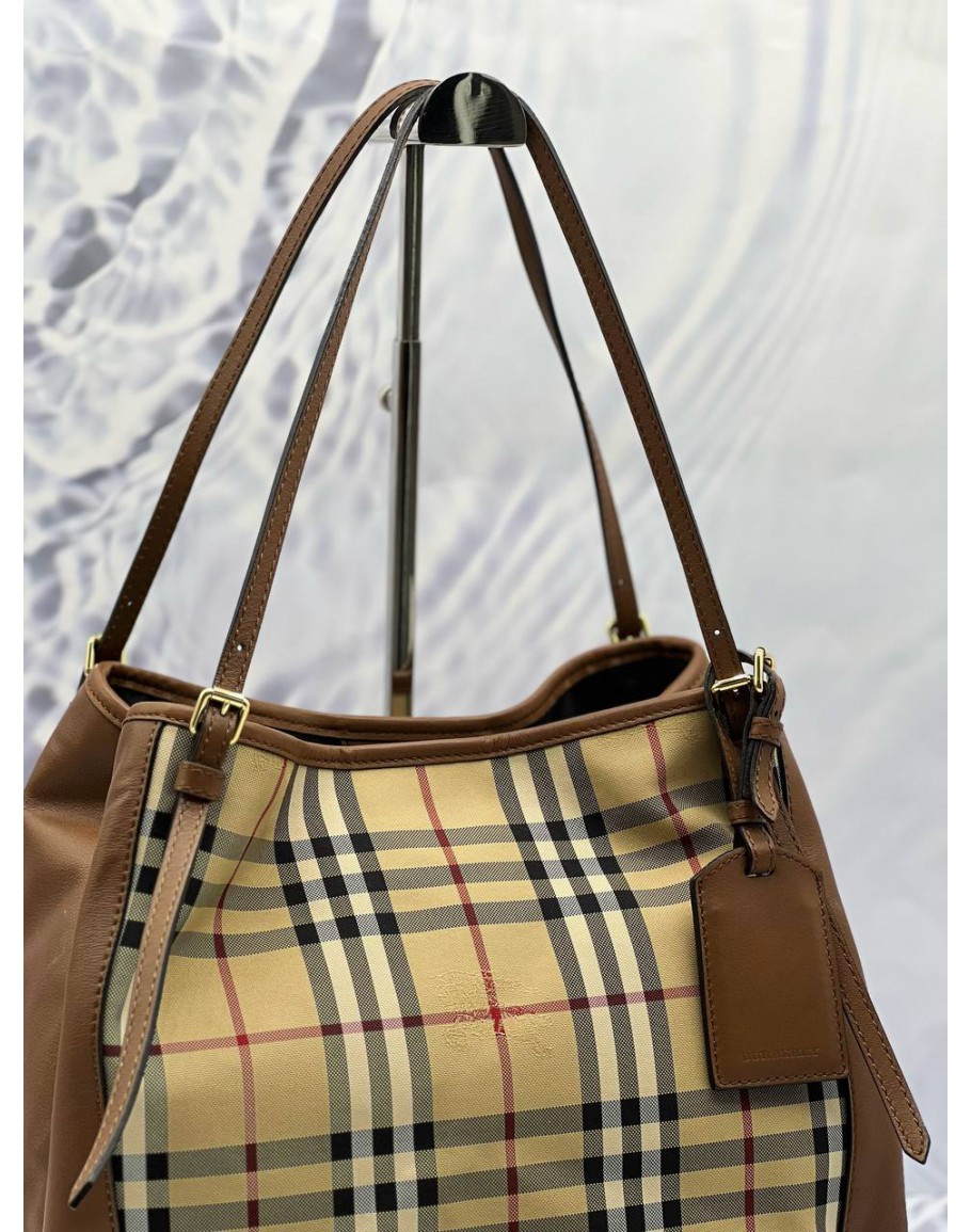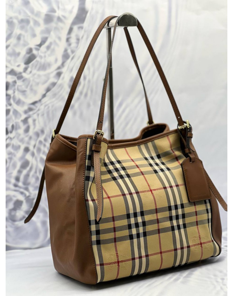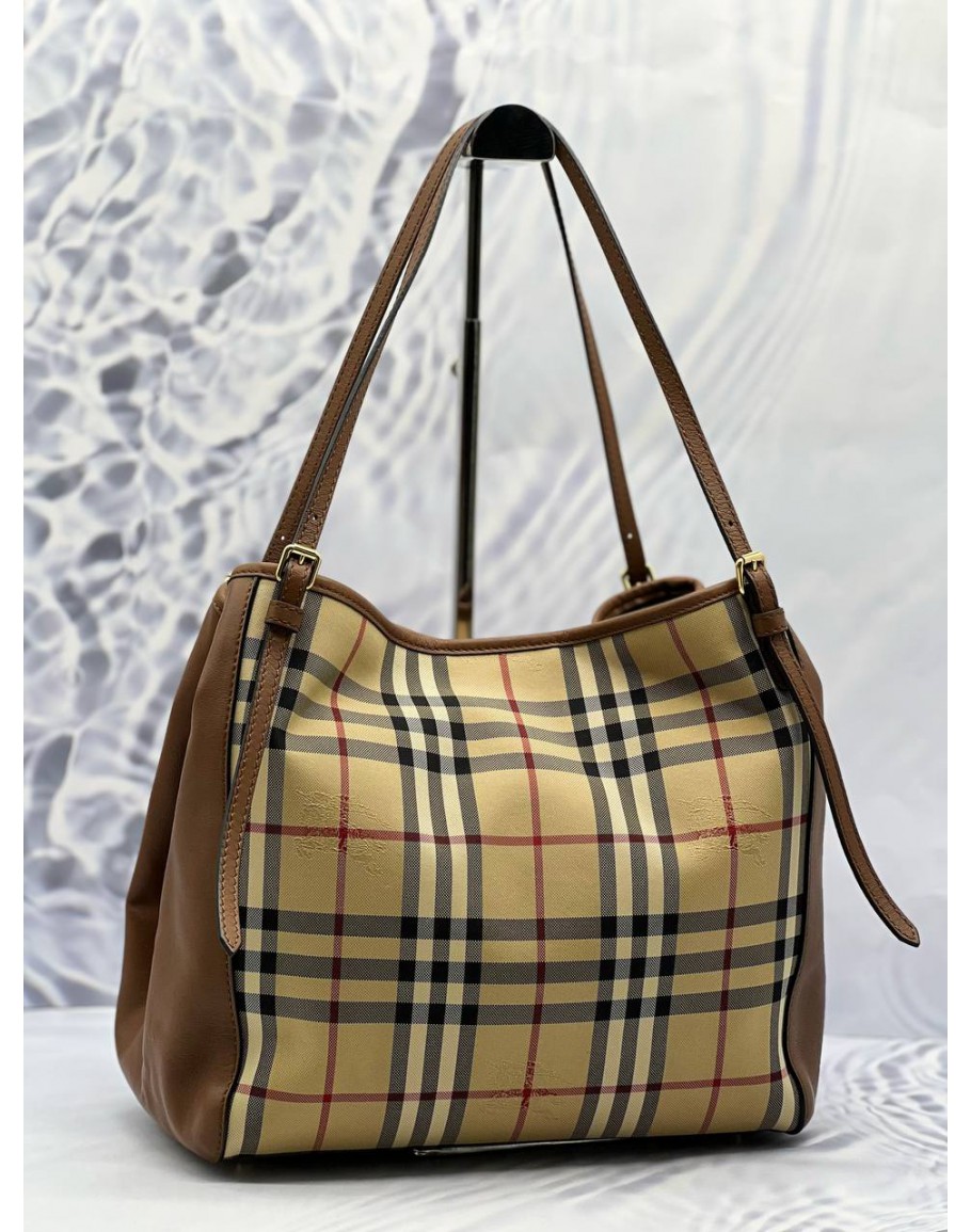 Tags: BURBERRY HORSEFERRY SHOULDER BAG IN BEIGE CHECK CANTERBURY CANVAS WITH BROWN LEATHER
