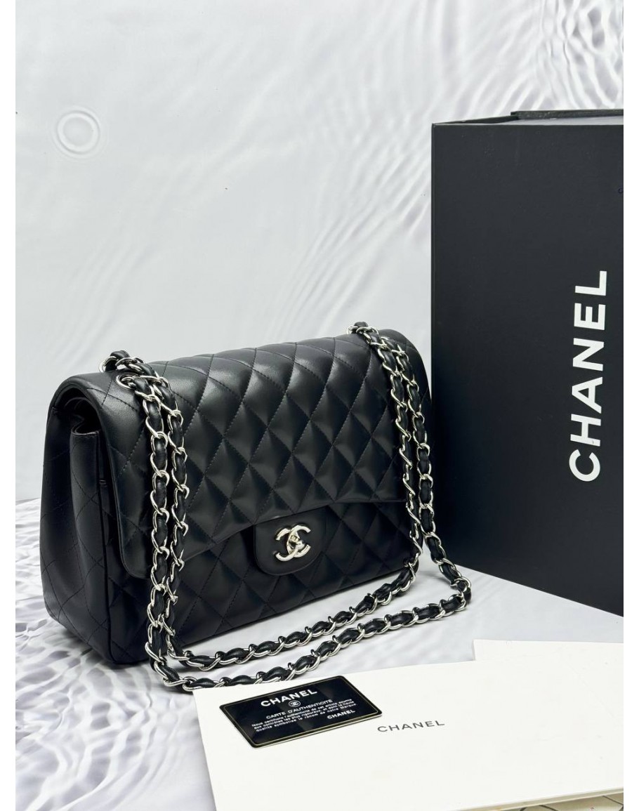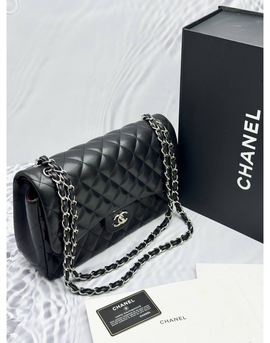 Tags: CHANEL CLASSIC JUMBO DOUBLE FLAP SHOULDER BAG IN BLACK LAMBSKIN LEATHER -FULL SET-