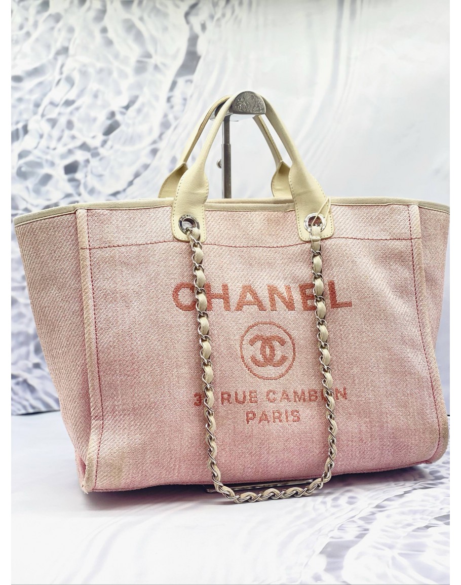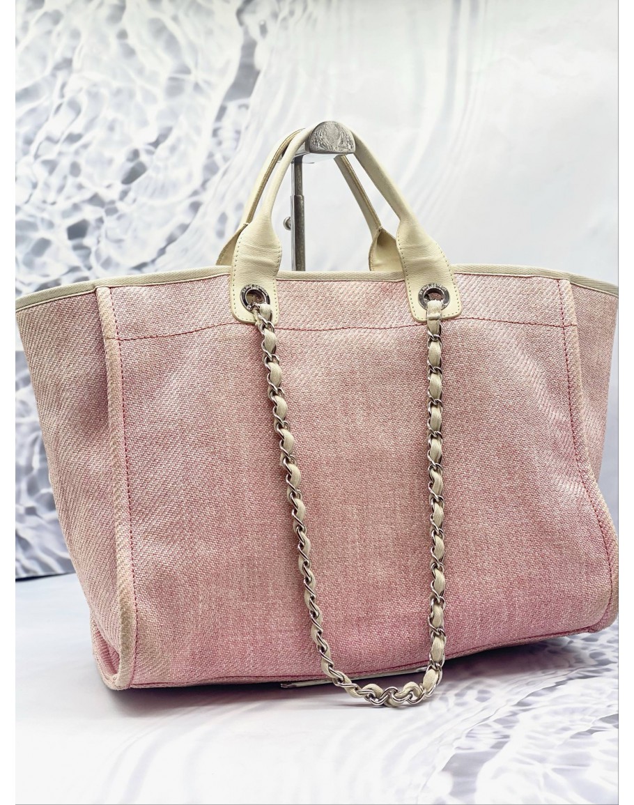 Tags: CHANEL DEAUVILLE TOTE SHOULDER BAG IN DUSTY BLUSH PINK CANVAS WITH CREAM CALFSKIN LEATHER