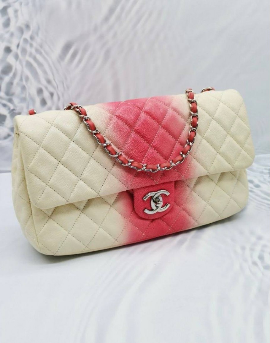 Tags: CHANEL JUMBO SINGLE FLAP BAG IN OMBRE OFF WHITE WITH PINK CAVIAR LEATHER