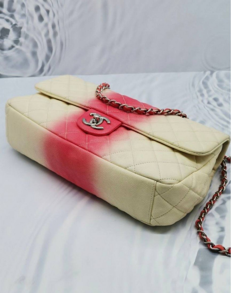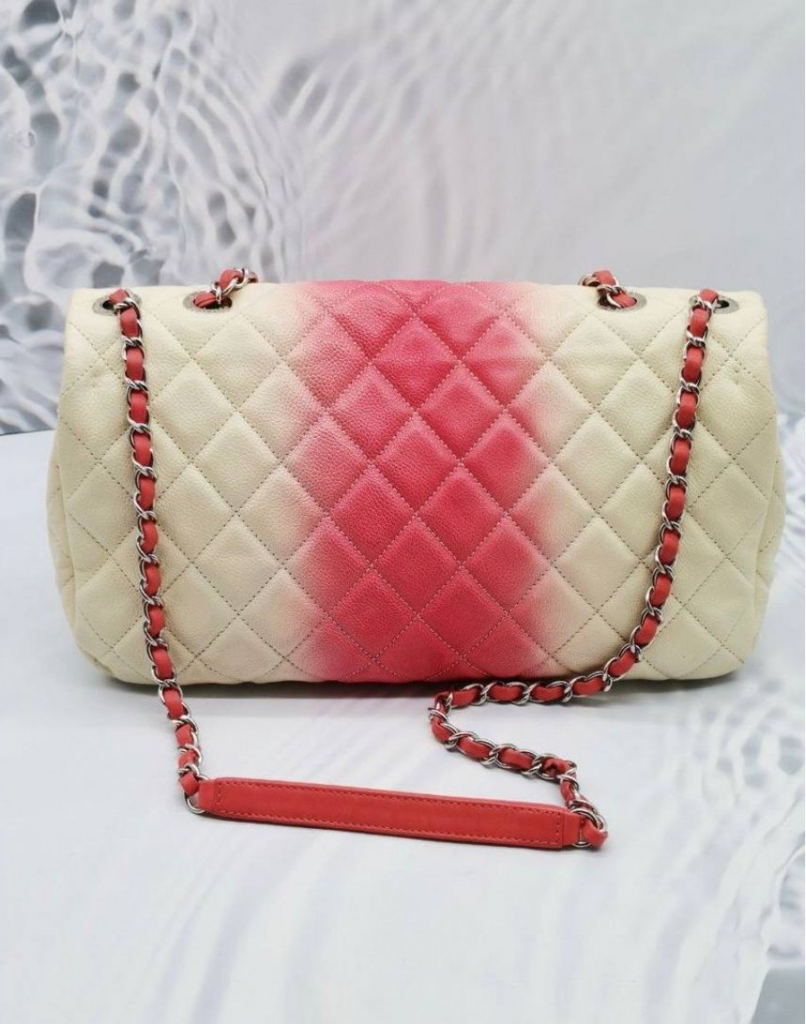 Product Code: CHANEL JUMBO SINGLE FLAP BAG IN OMBRE OFF WHITE WITH PINK