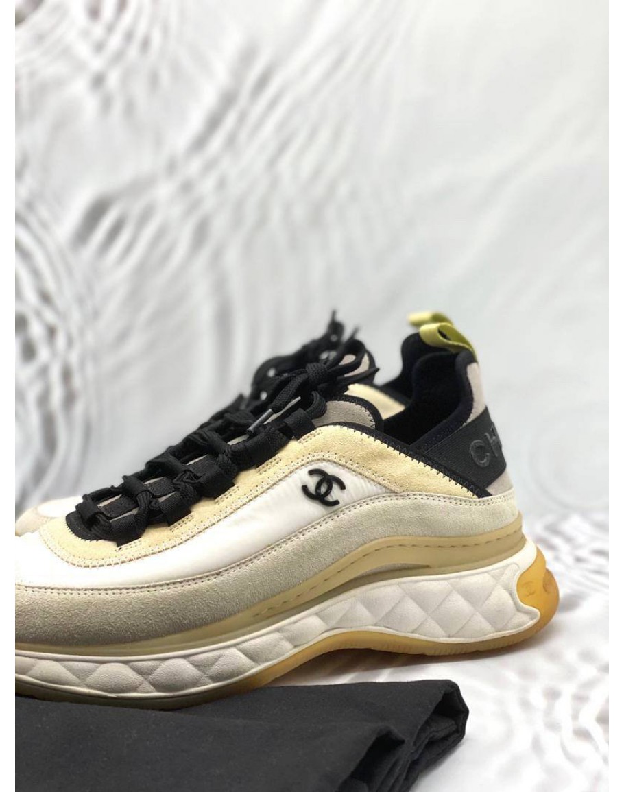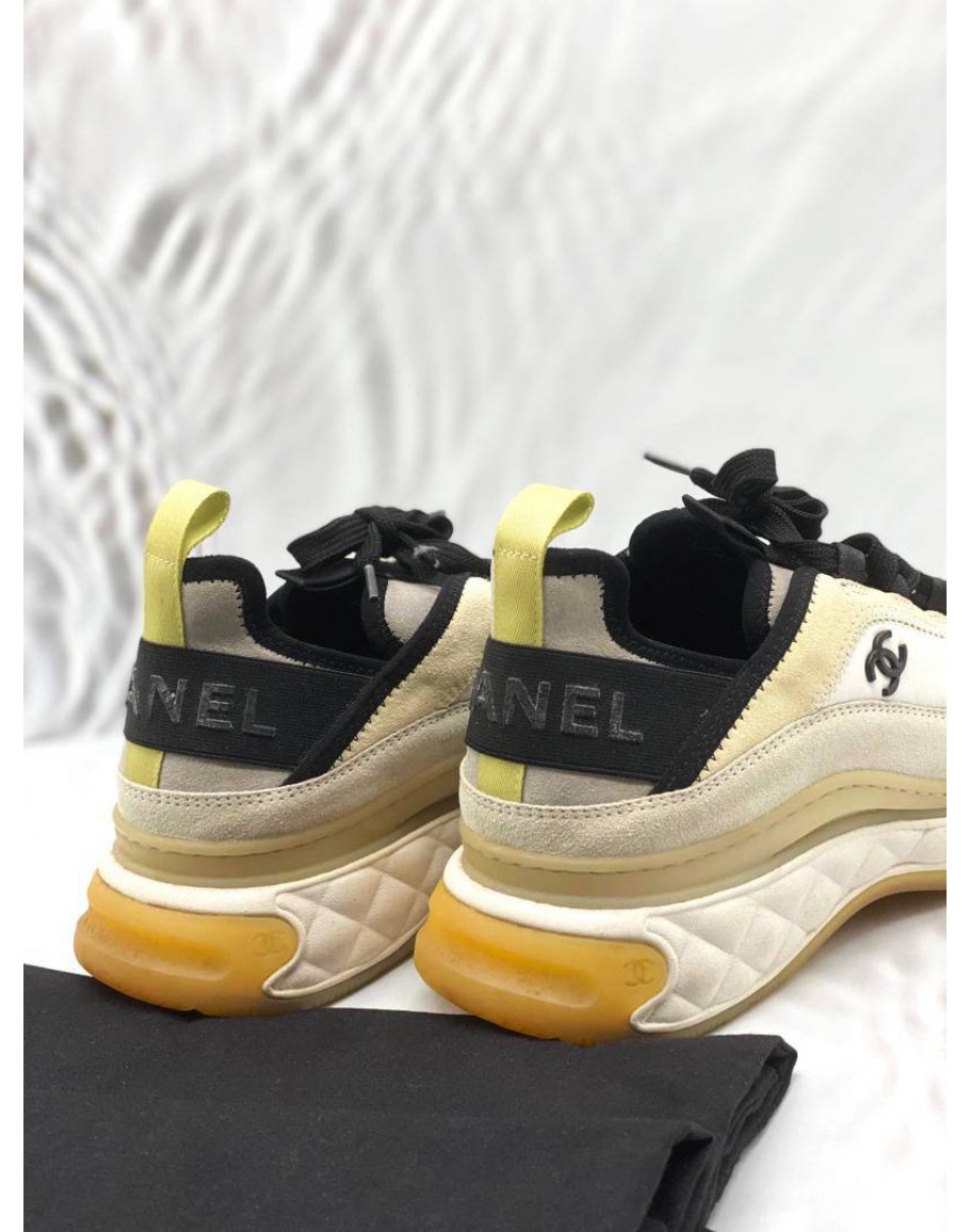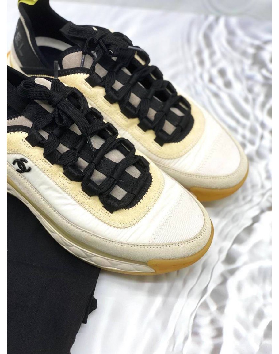 CHANEL SNEAKERS SIZE 41 IN WHITE WITH YELLOW COLORWAY