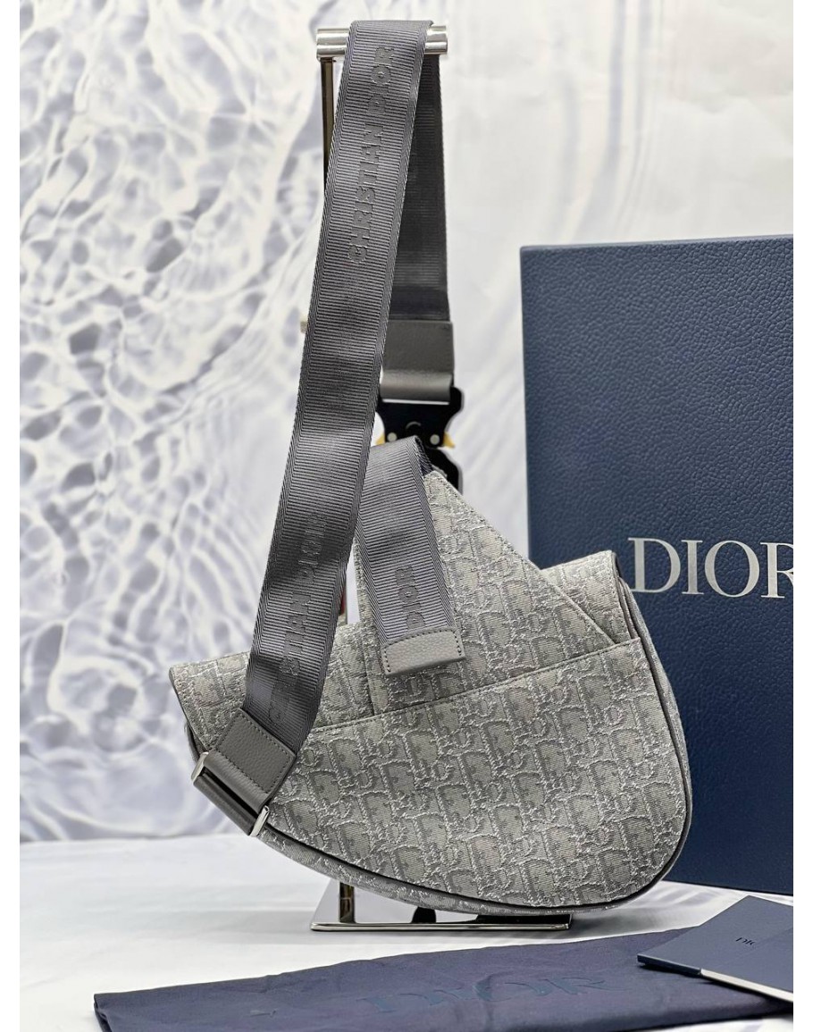 CHRISTIAN DIOR SADDLE IN GREY OBLIQUE JACQUARD -FULL SET-
