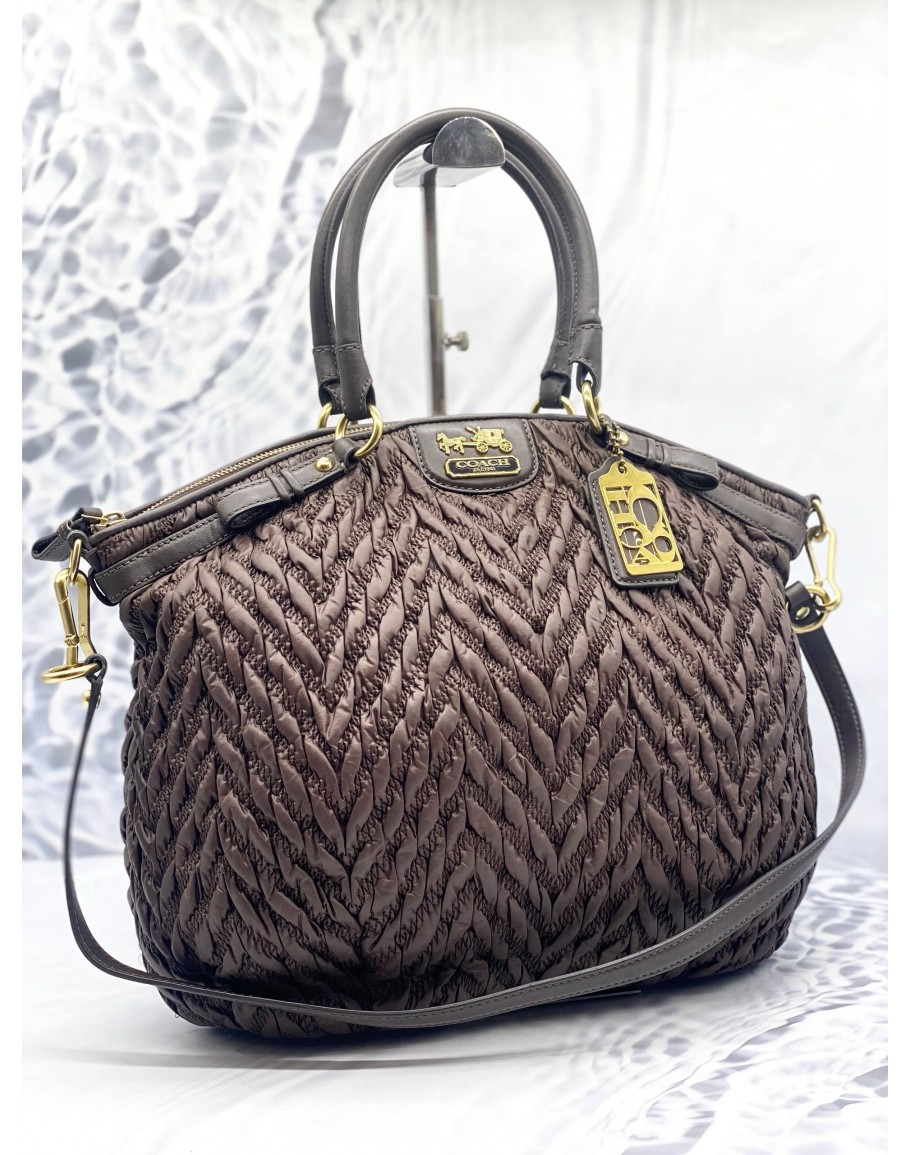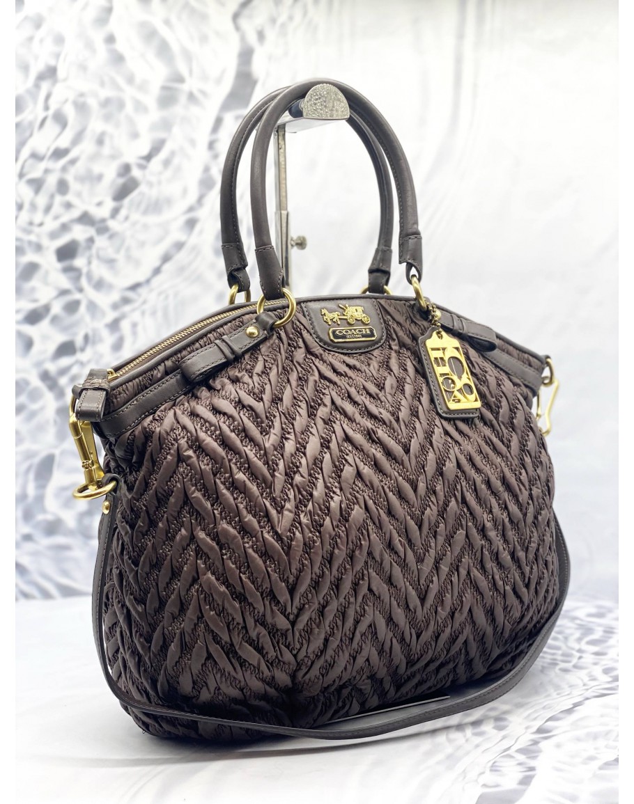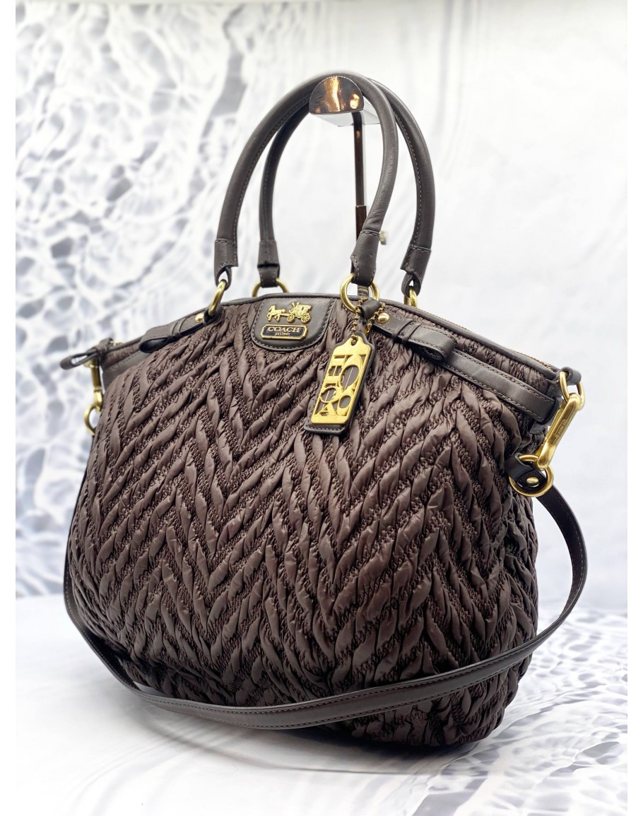 Tags: COACH MADISON SHOULDER BAG IN DARK BROWN NYLON WITH CALFSKIN LEATHER