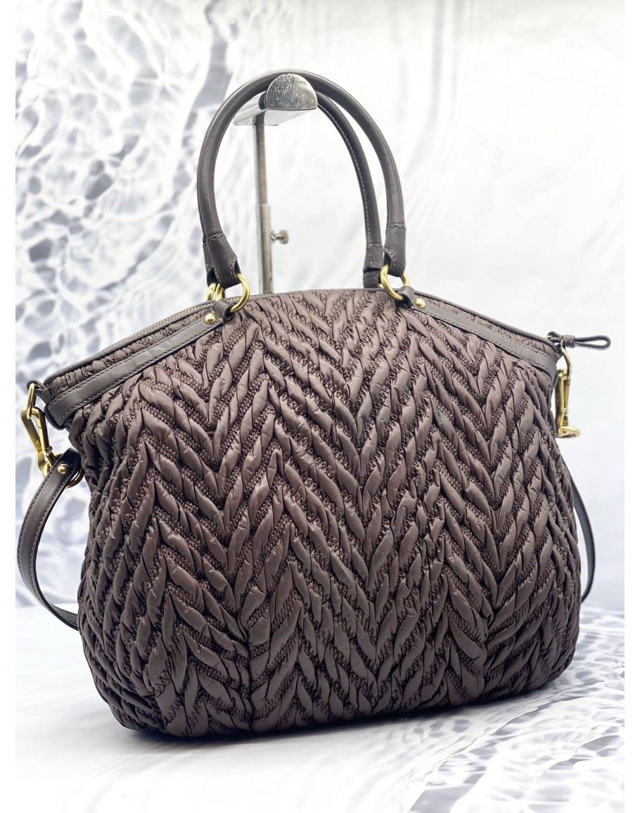 COACH MADISON SHOULDER BAG IN DARK BROWN NYLON WITH CALFSKIN LEATHER