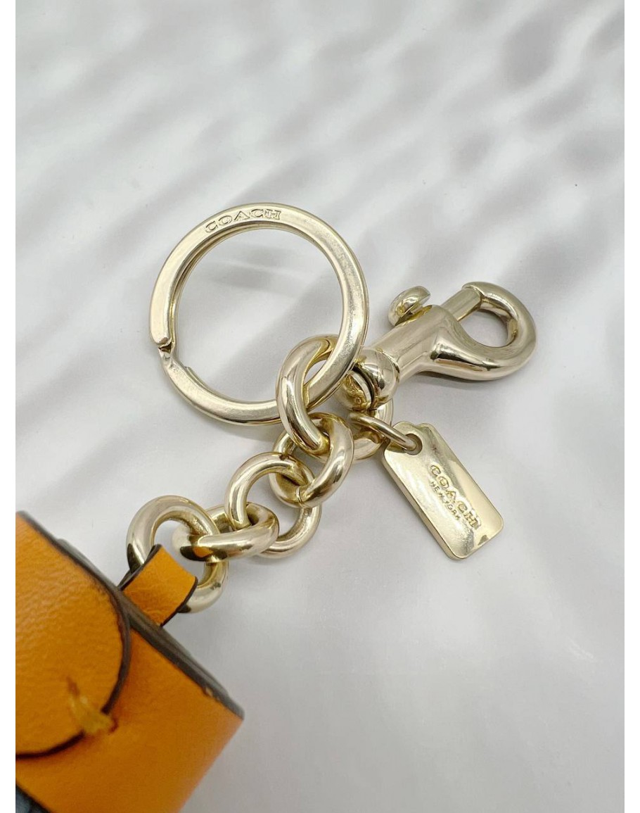 COACH TASSEL BAG CHARM IN BLUE WITH ORANGE LEATHER