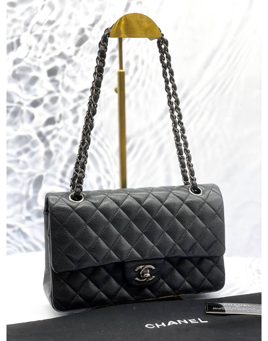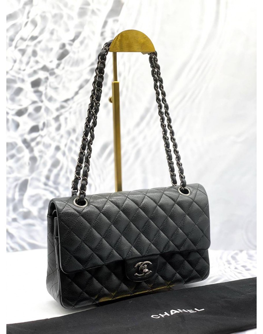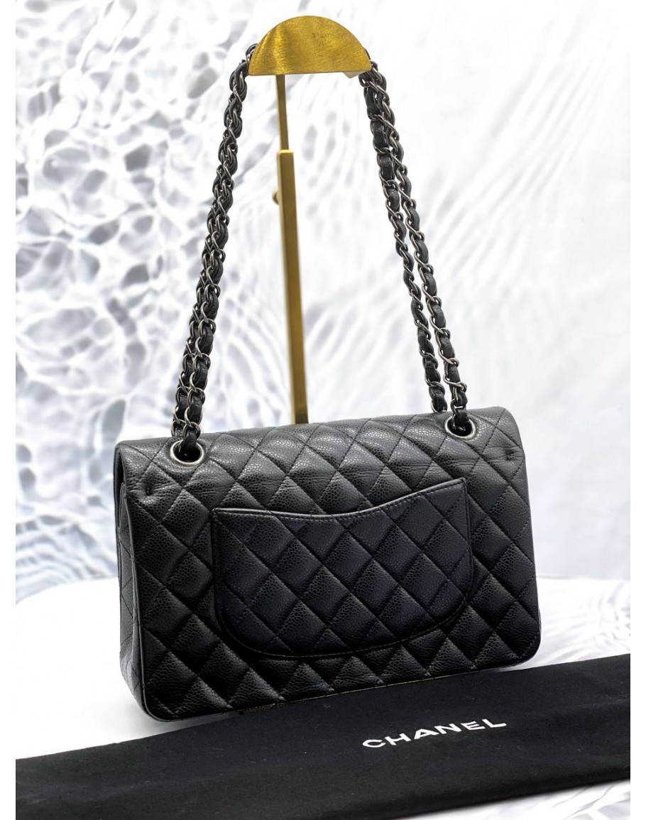 Tags: (LIKE NEW) CHANEL MEDIUM CLASSIC DOUBLE FLAP SHOULDER BAG IN BLACK CAVIAR LEATHER