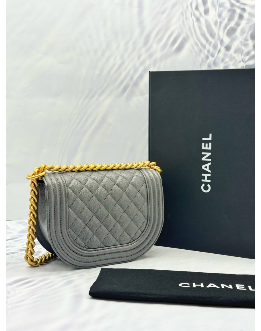 Tags: (UNUSED) 2024 CHANEL ROUND BOY SHOULDER AND CROSSBODY BAG IN GREY CAVIAR LEATHER -FULL SET-