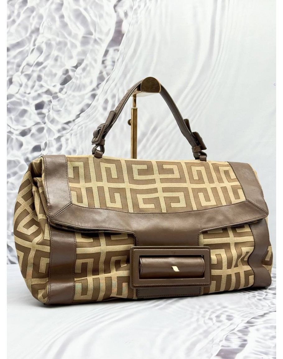 Tags: GIVENCHY 4G LOGO PATTERN HANDBAG IN BEIGE CANVAS WITH BROWN LEATHER