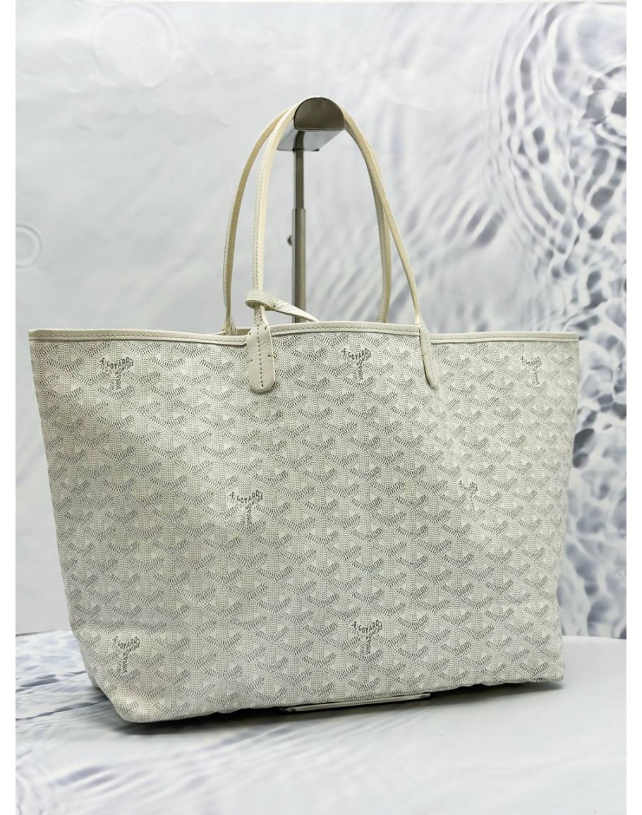GOYARD SAINT LOUIS PM STRIPES AND INITIALS TOTE SHOULDER BAG IN WHITE GOYARDINE CANVAS WITH CHEVROCHES CALFSKIN LEATHER