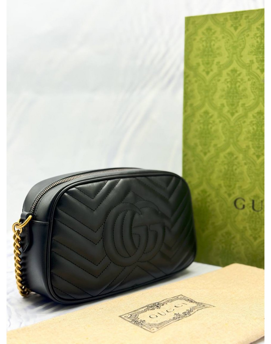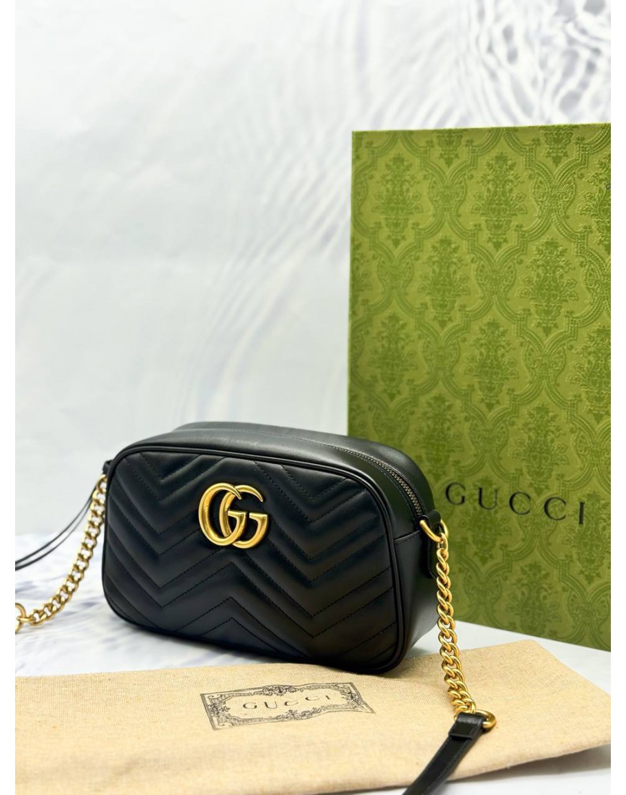 Tags: GUCCI GG MARMONT SMALL CAMERA CROSSBODY BAG IN BLACK MATELASSE CHEVRON LEATHER -FULL SET-