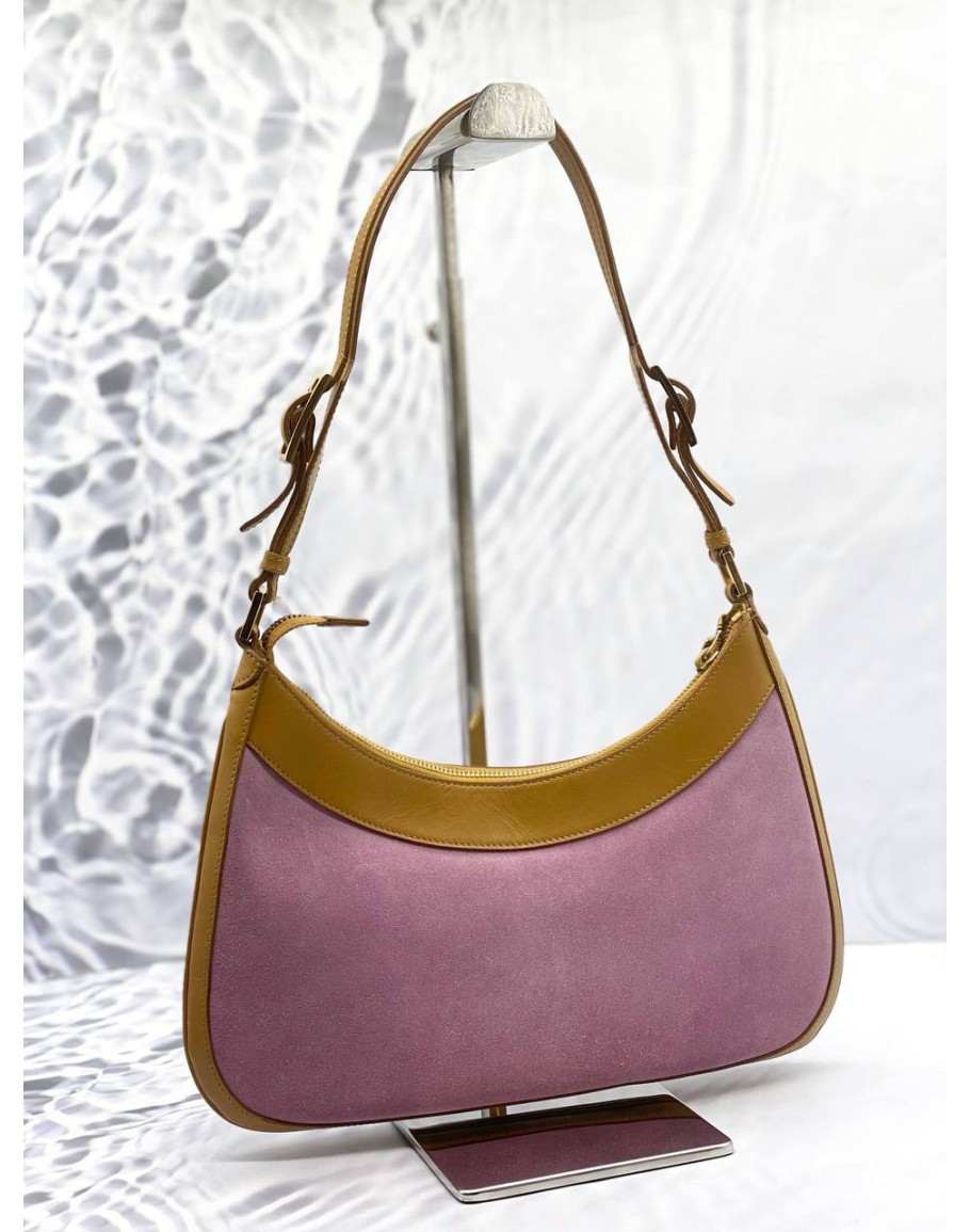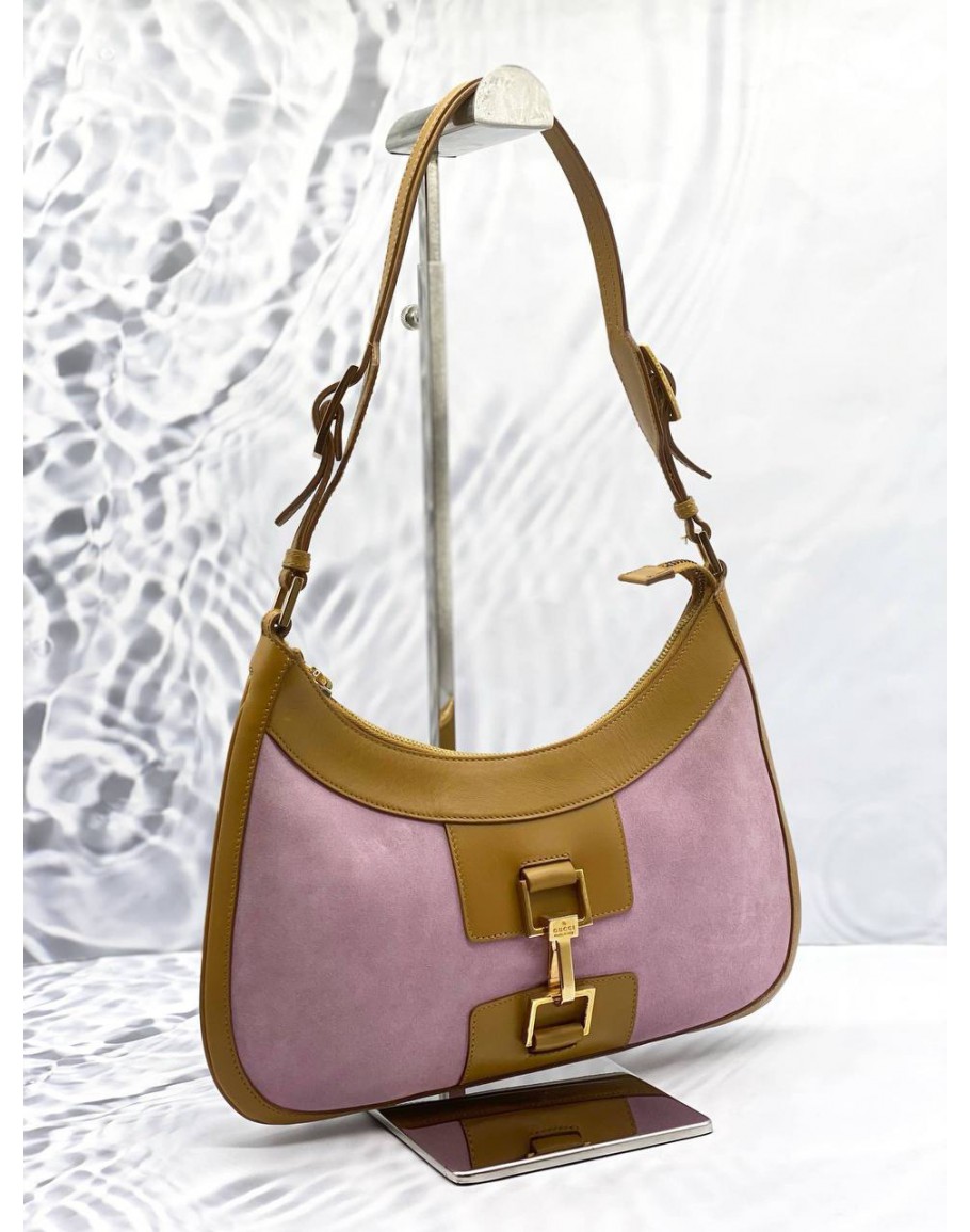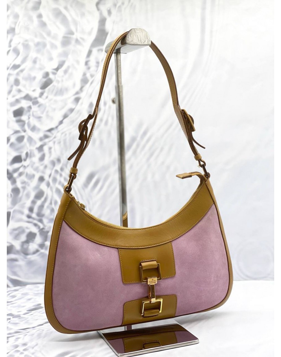 GUCCI JACKIE SHOULDER BAG IN PINK SUEDE WITH TAN LEATHER