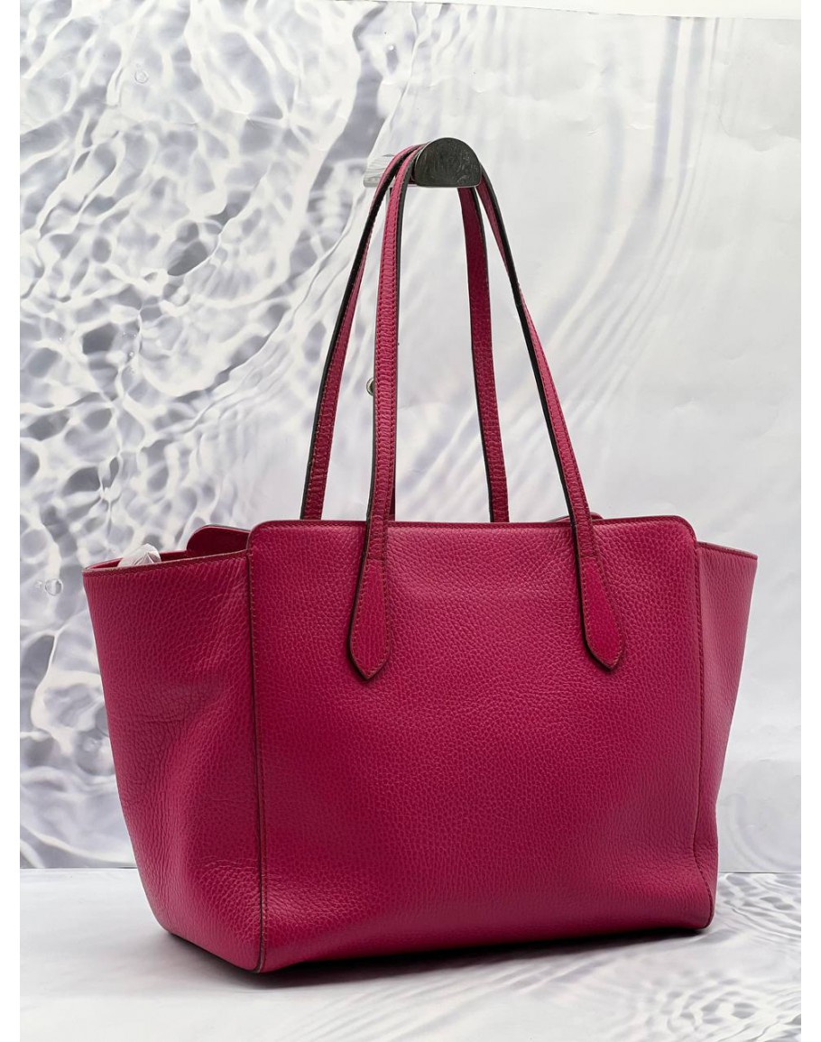 GUCCI SWING TOTE SHOULDER BAG IN PINK PEBBLED LEATHER
