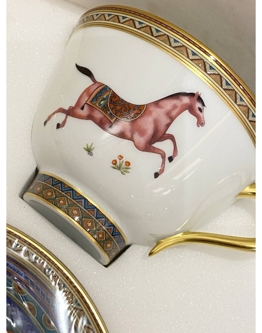 (UNUSED) HERMES CHEVAL D’ORIENT TEA CUP AND SAUCER -FULL SET-