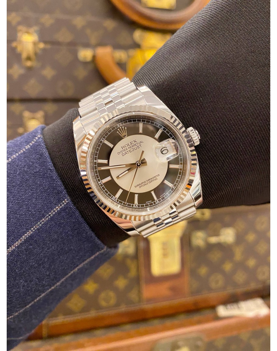 (LIKE NEW) 2012 ROLEX OYSTER PERPETUAL DATEJUST 36 REF 116234 TUXEDO DIAL ROULETTE DATE 36MM AUTOMATIC WATCH