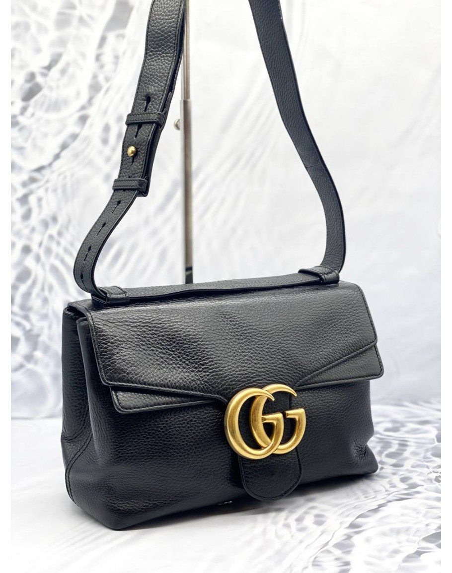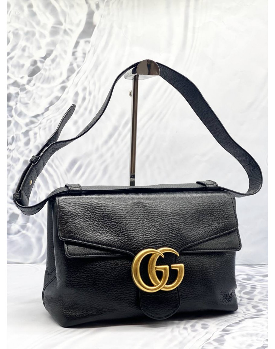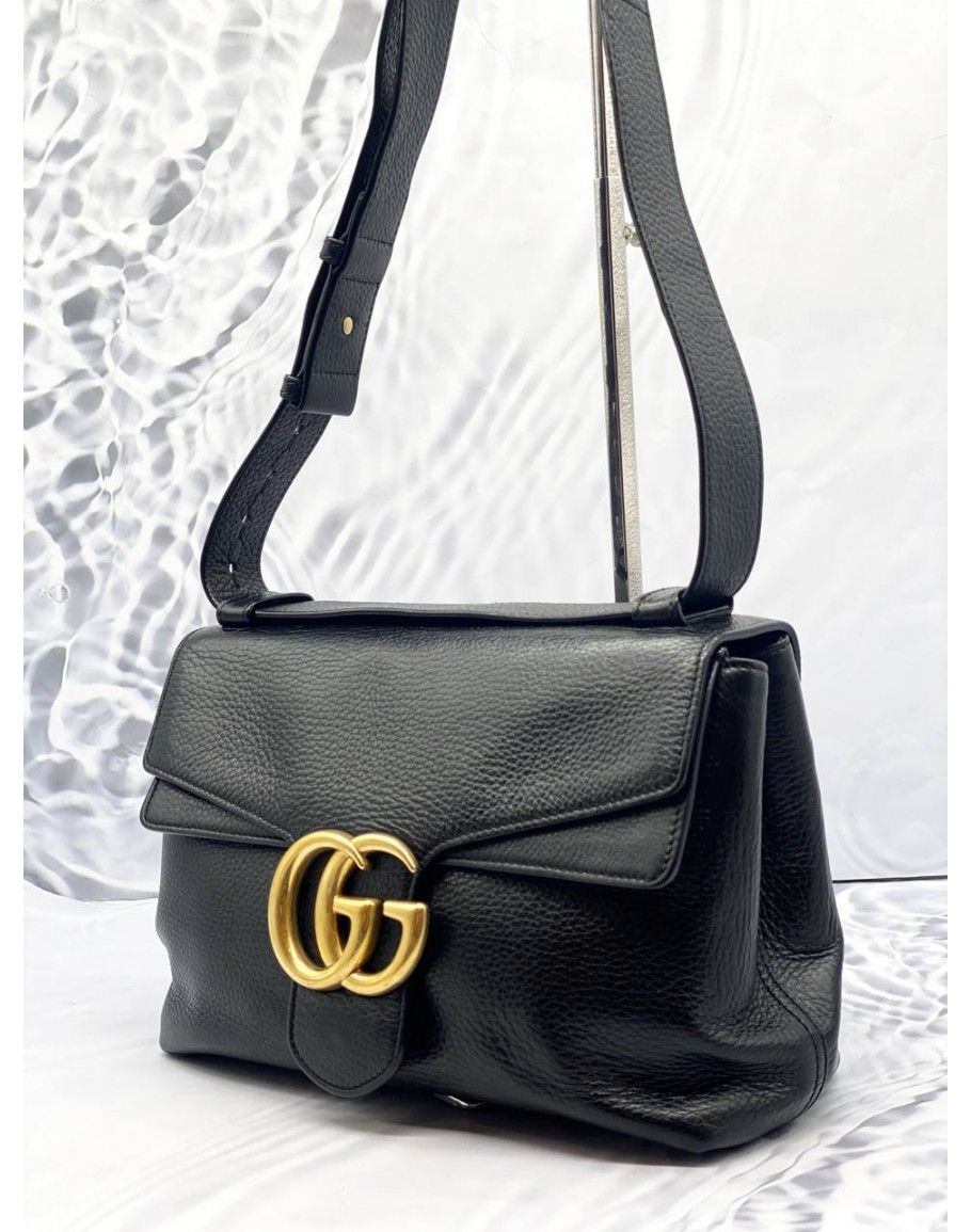 Tags: (LIKE NEW) GUCCI GG MARMONT MEDIUM SHOULDER BAG IN BLACK GRAINED CALFSKIN LEATHER