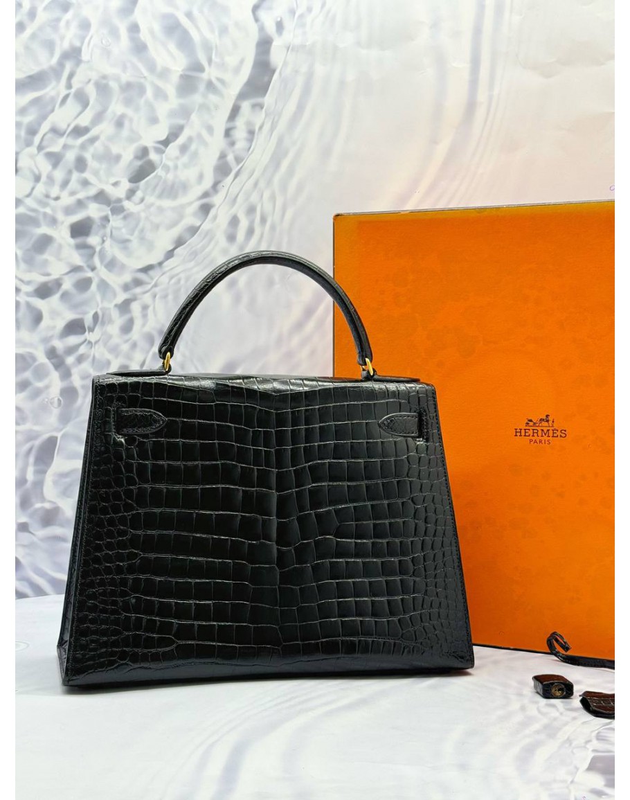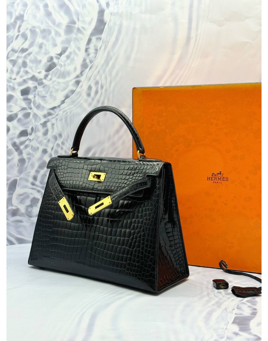 Product Code: HERMES KELLY 28 SELLIER IN BLACK POROSUS CROCODILE LEATHER