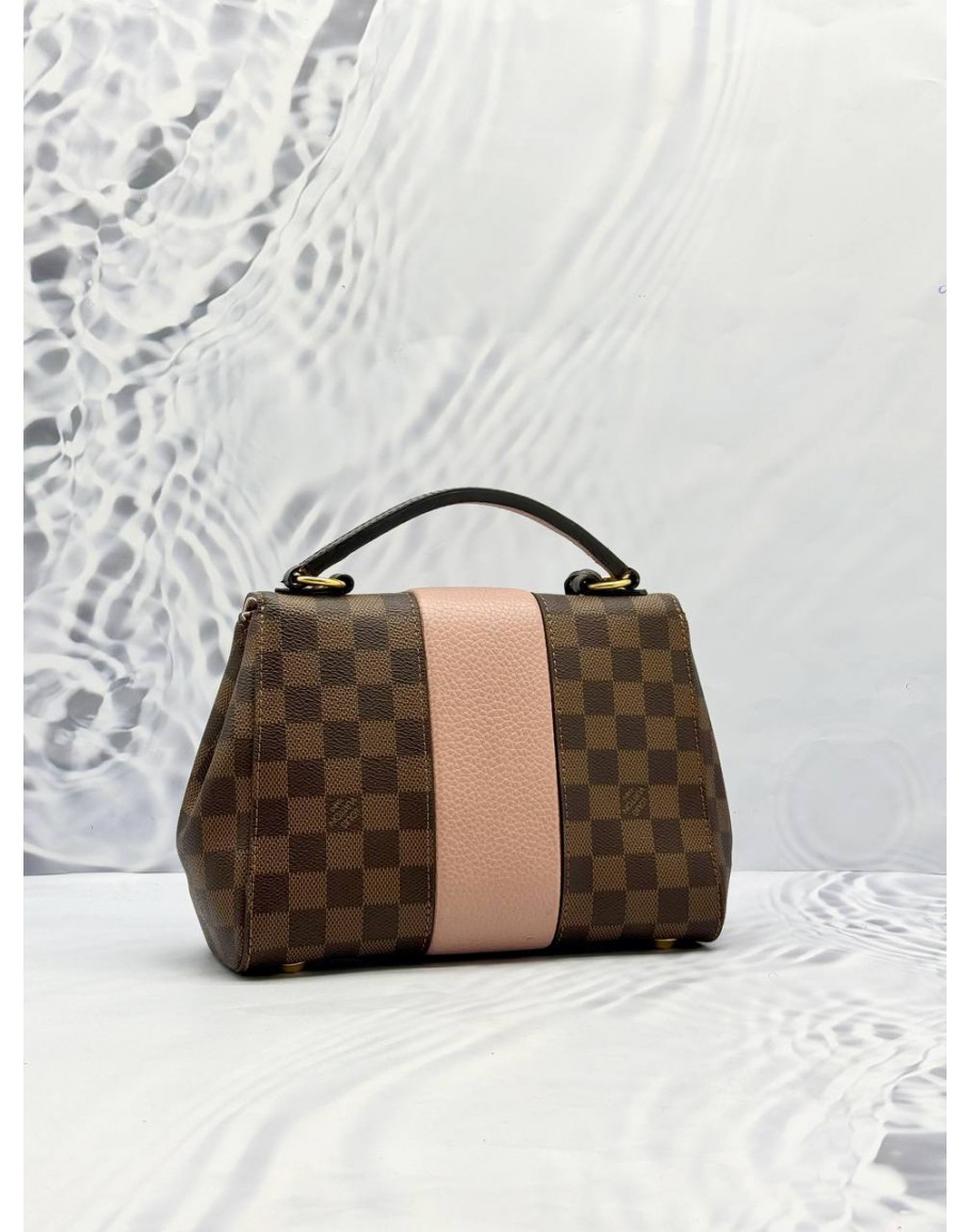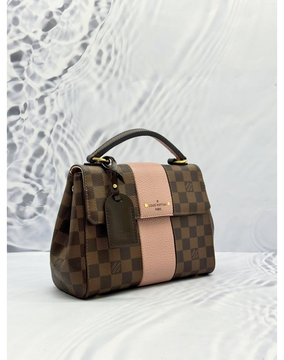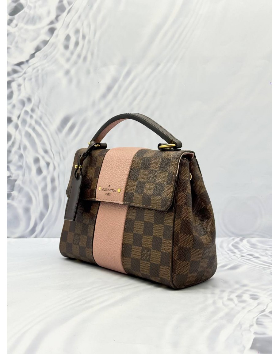 (LIKE NEW) LOUIS VUITTON BOND STREET BB TOP HANDLE AND CROSSBODY BAG IN BROWN DAMIER EBENE CANVAS WITH PINK GRAINED CALFSKIN LEATHER