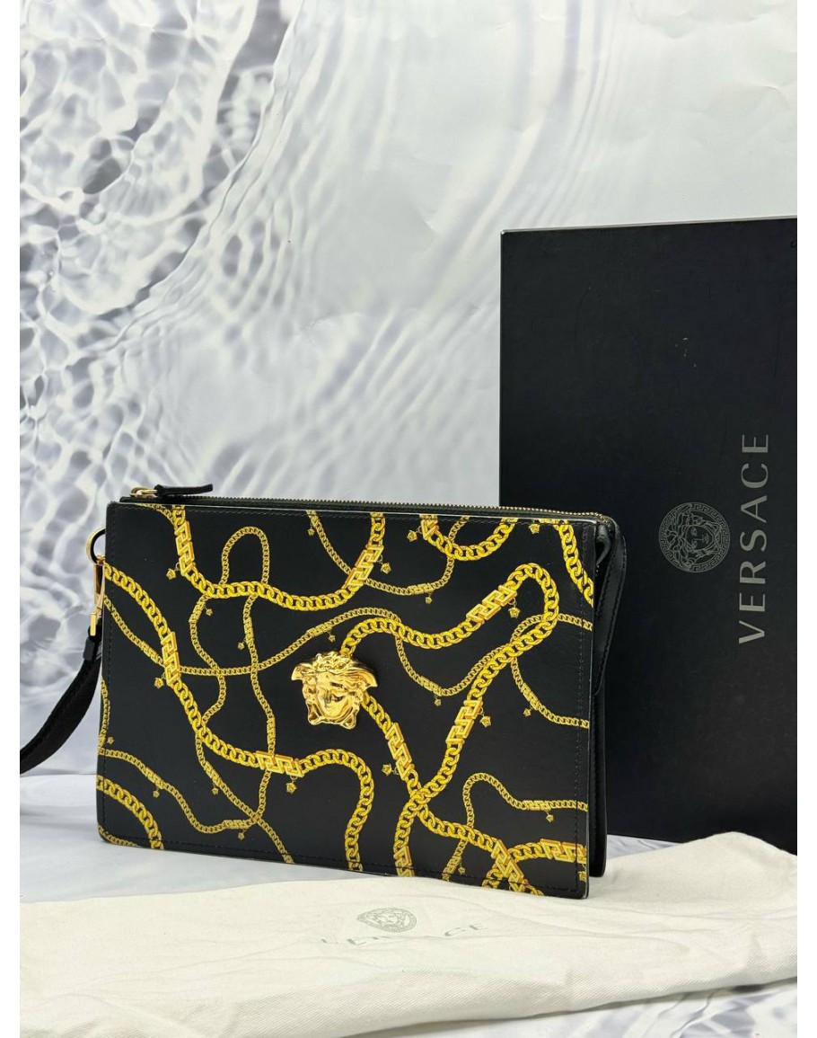 Tags:  (LIKE NEW) VERSACE MEDUSA CHAIN PRINT POUCH IN BLACK CALFSKIN LEATHER WITH GOLD
