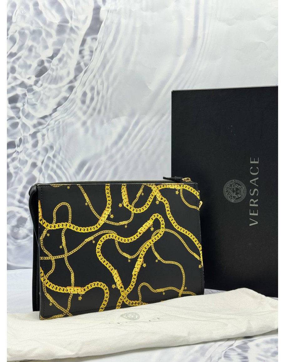 Product Code: VERSACE MEDUSA CHAIN PRINT POUCH IN BLACK CALFSKIN