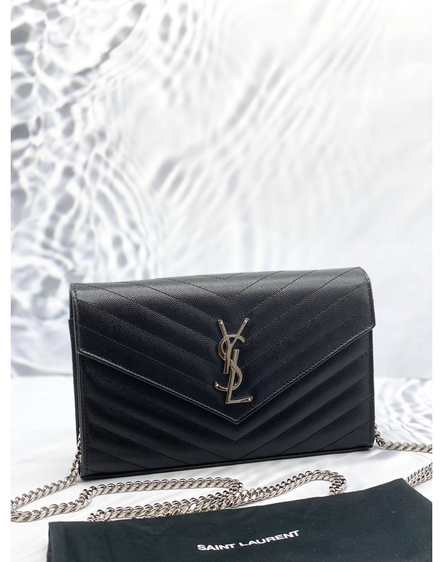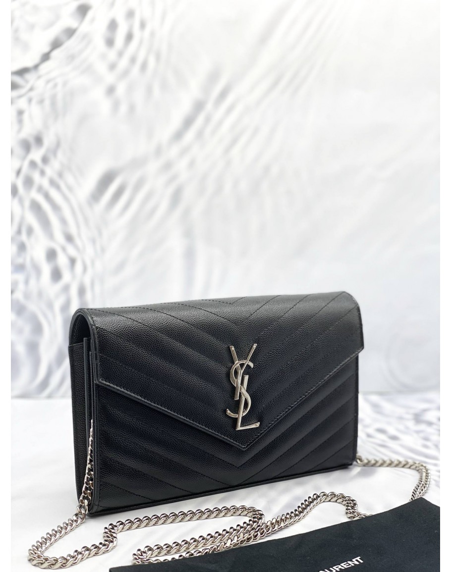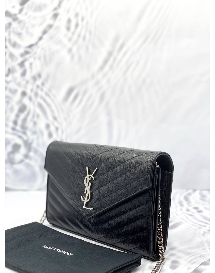 Tags: (LIKE NEW)YSL SAINT LAURENT CASSANDRA LEATHER CHAIN WALLET IN BLACK GHW