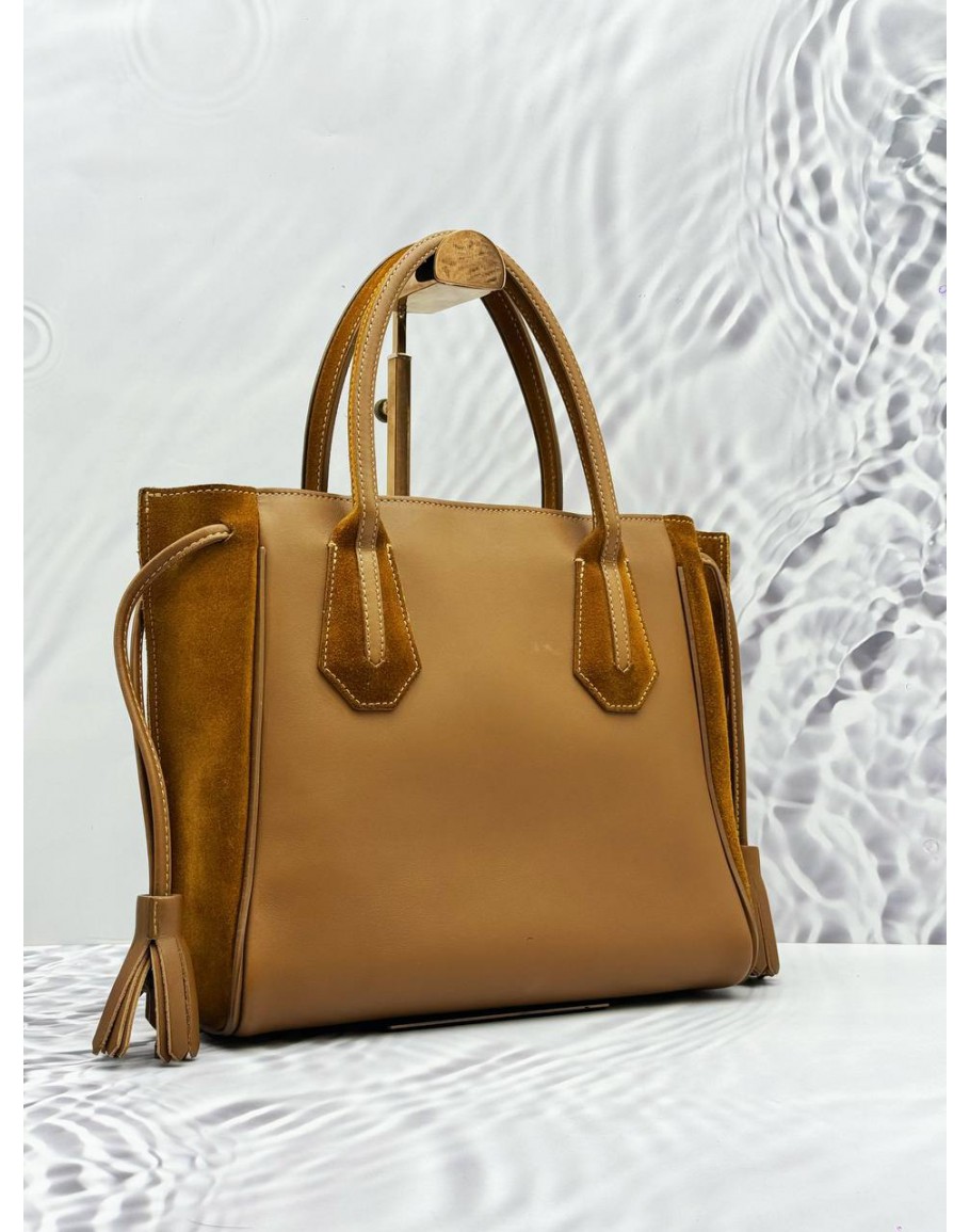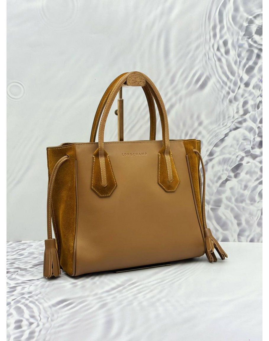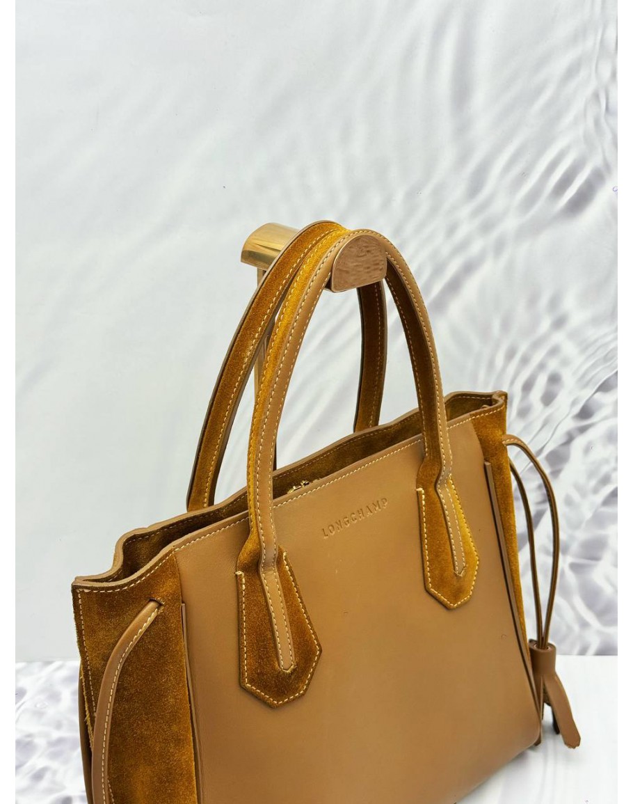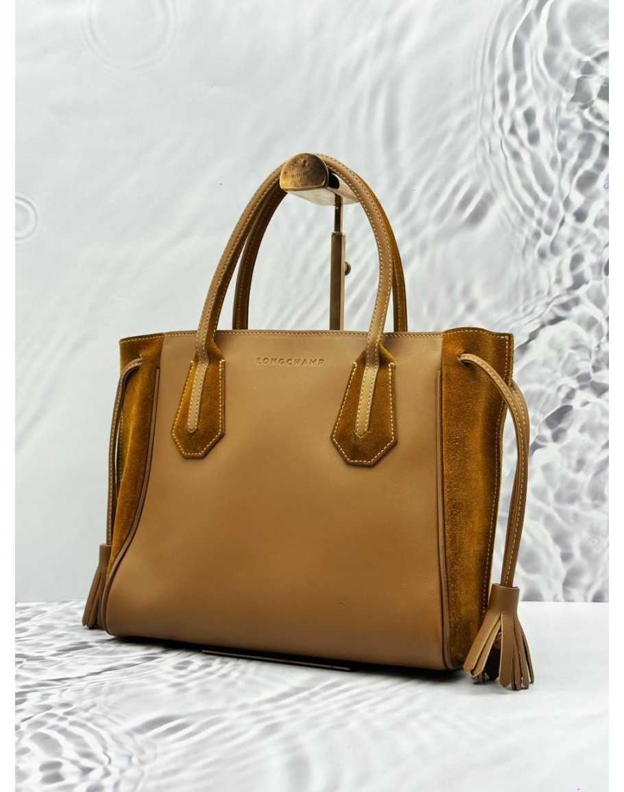 LONGCHAMP PENELOPE FANTASY TOTE TOP HANDLE BAG IN BROWN CALFSKIN WITH SUEDE LEATHER