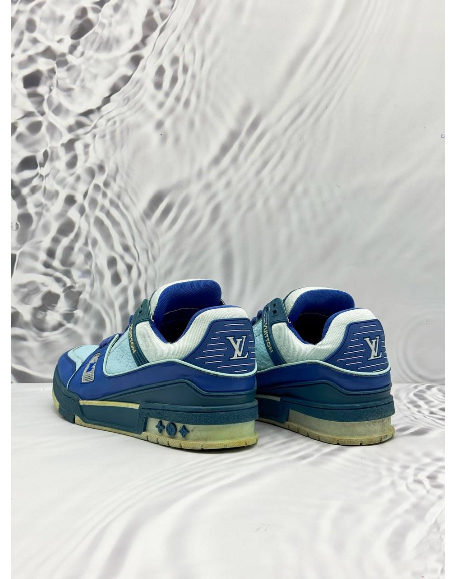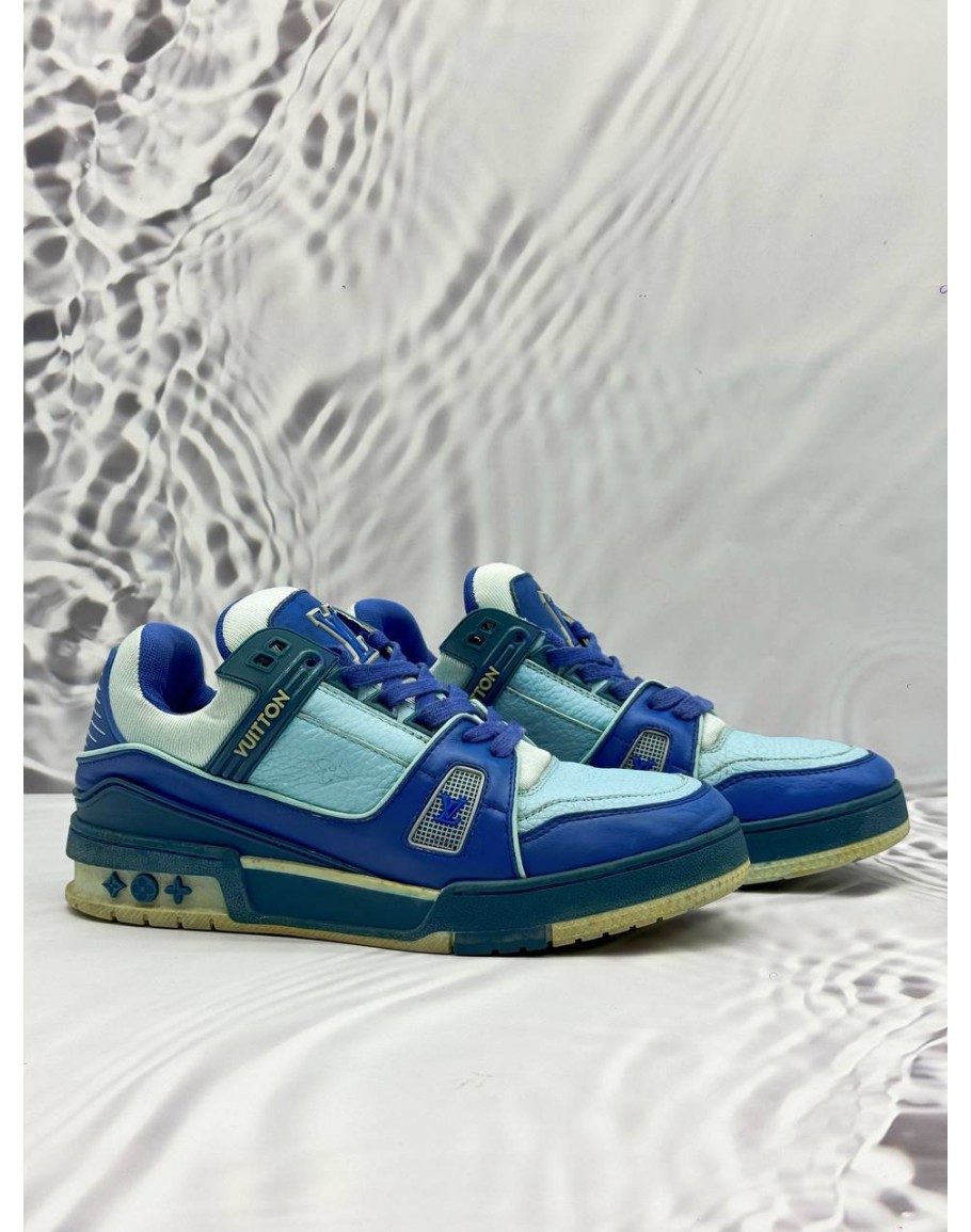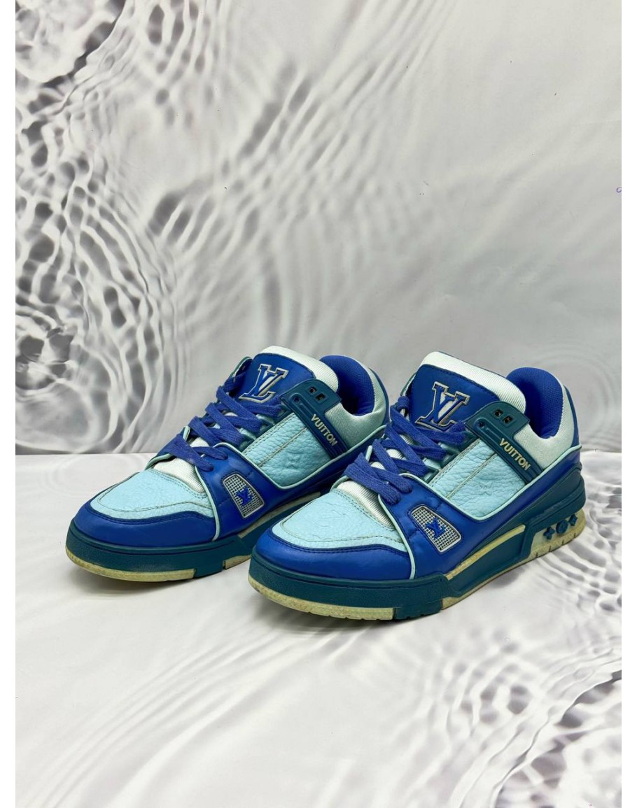 LOUIS VUITTON LV TRAINER SNEAKERS SIZE 6 IN BLUE COLORWAY MONOGRAM LEATHER