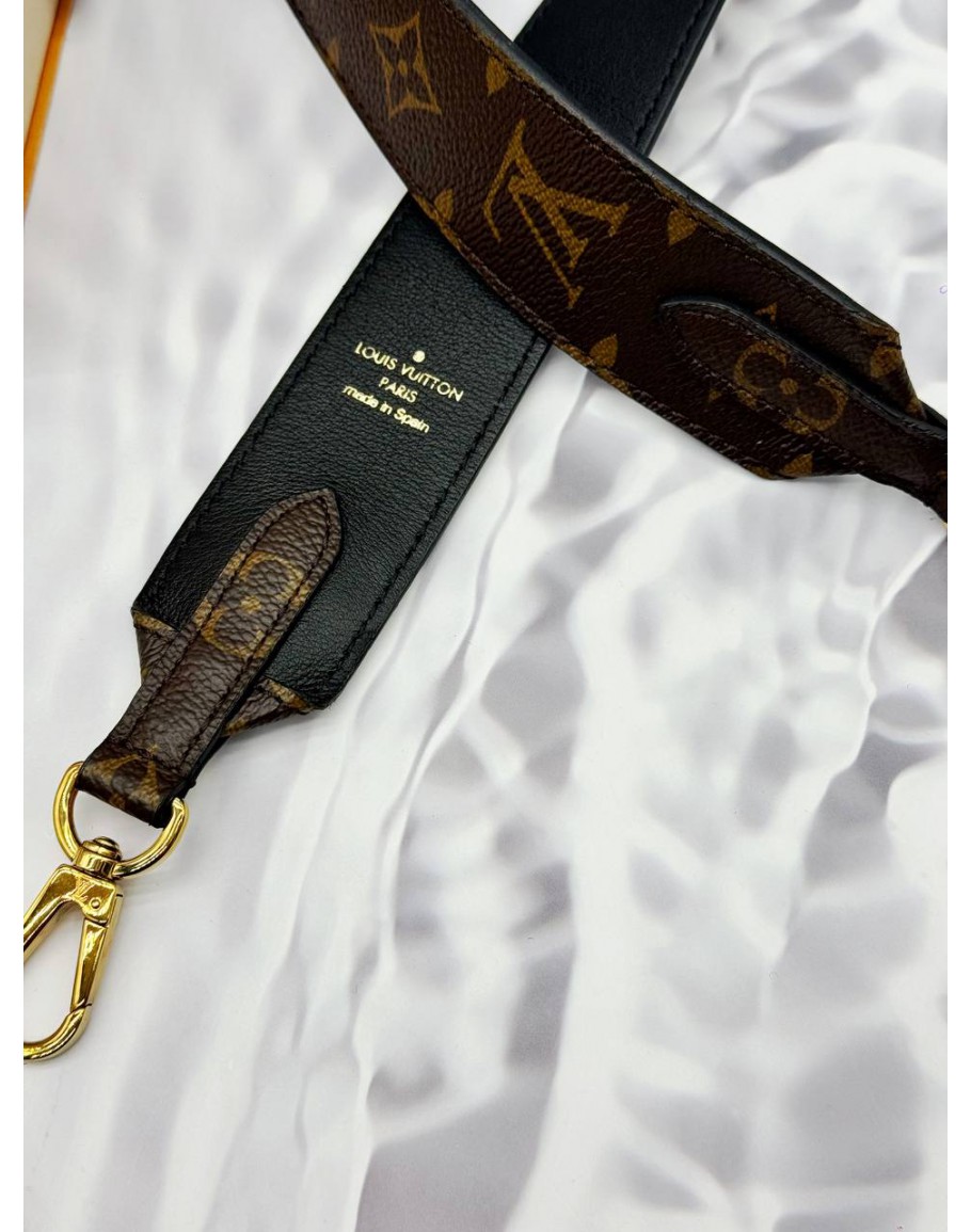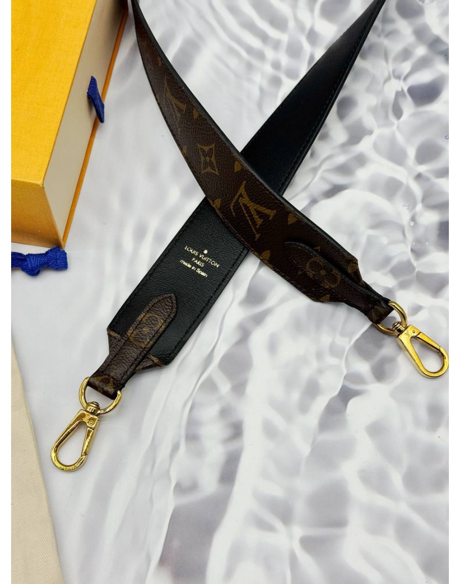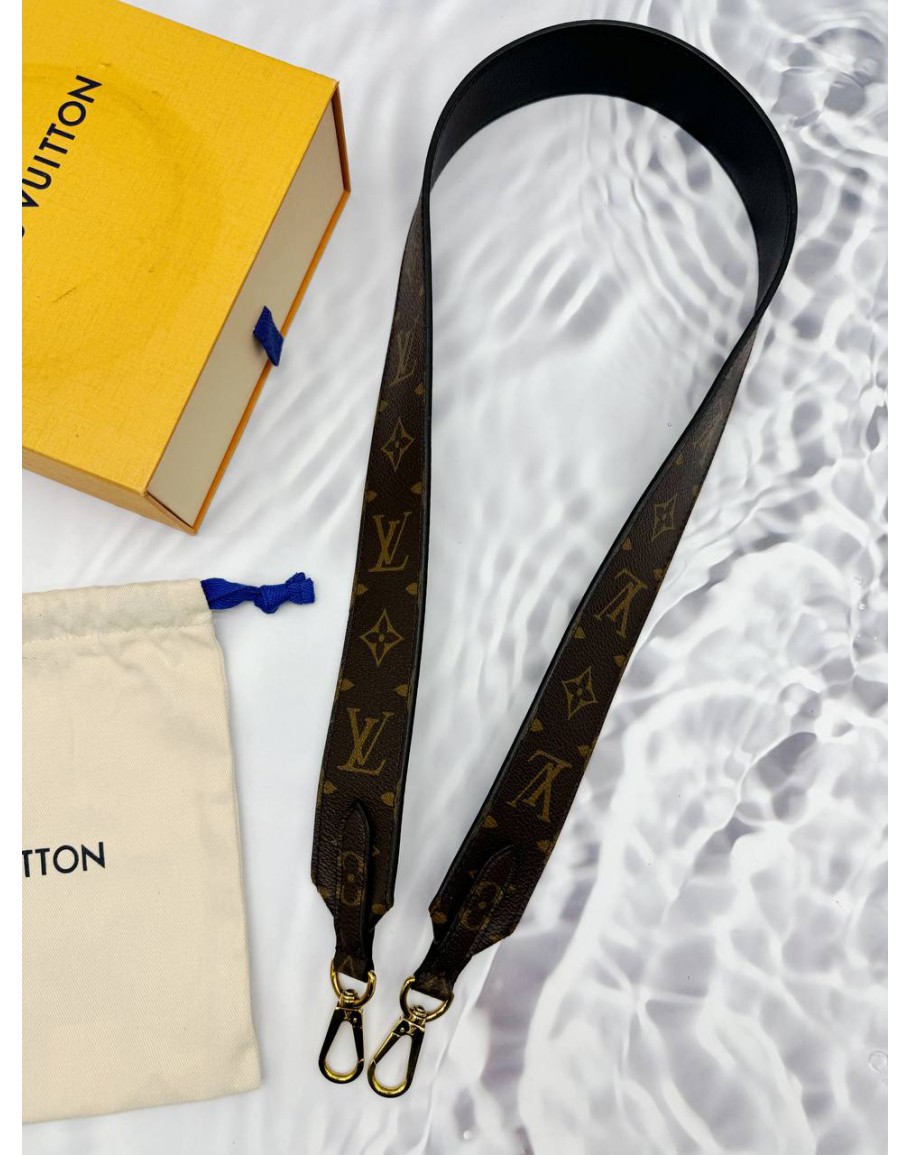 LOUIS VUITTON STRAP BANDOULIERE IN BROWN MONOGRAM CANVAS WITH BLACK LEATHER -FULL SET-