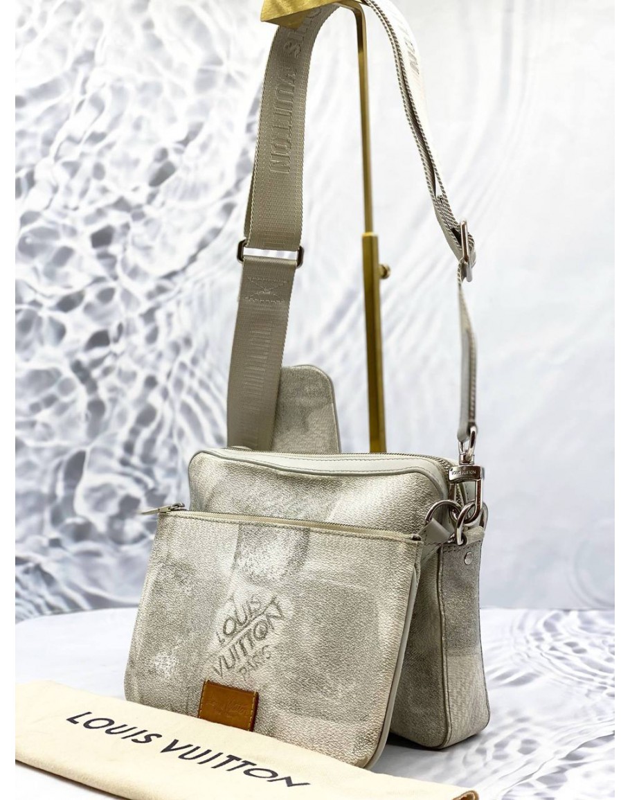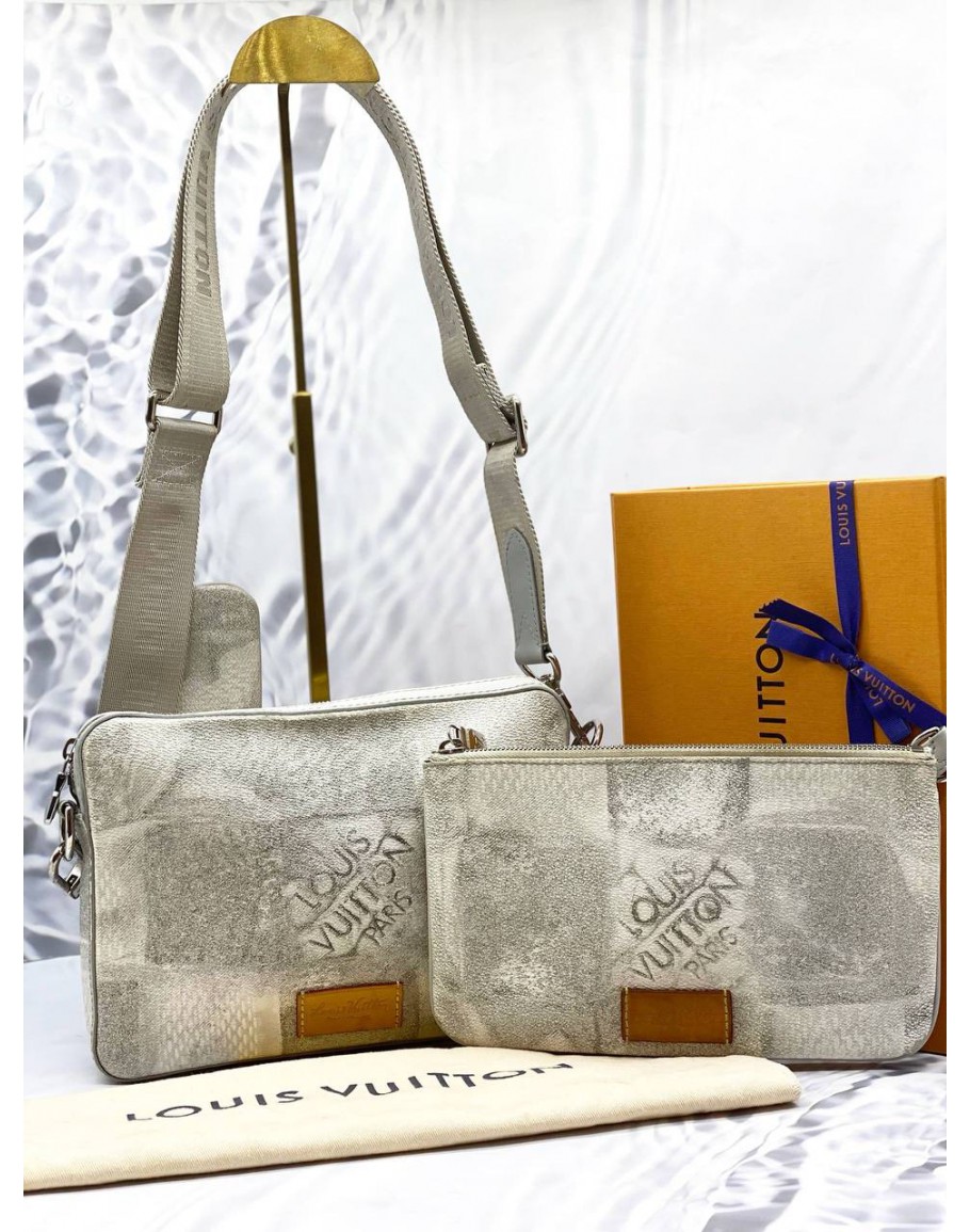 Tags: (LIKE NEW) LOUIS VUITTON TRIO MESSENGER BAG IN STONE GREY DAMIER SALT CANVAS -FULL SET-