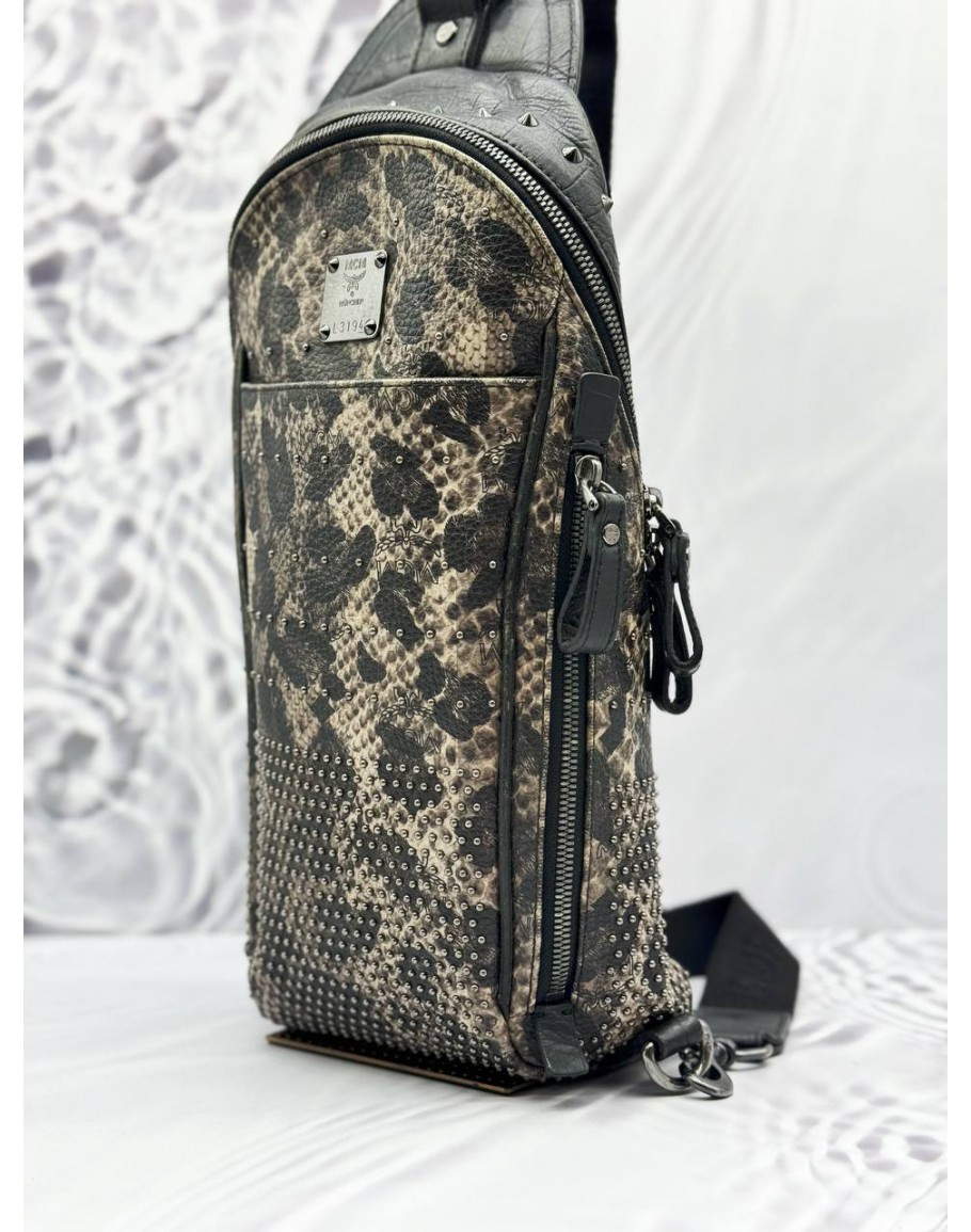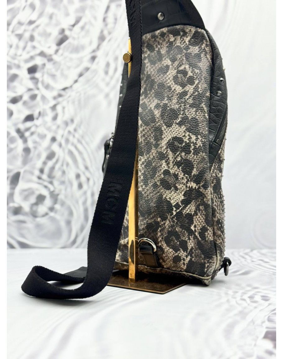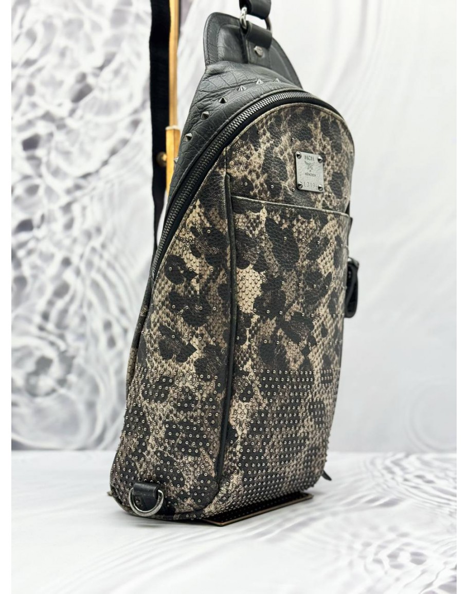 Tags: MCM SMALL STARK STUDDED CROSSBODY BAG IN BLACK WITH BROWN SNAKE PRINT LEATHER