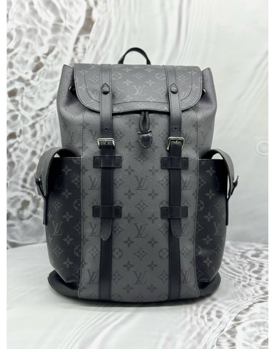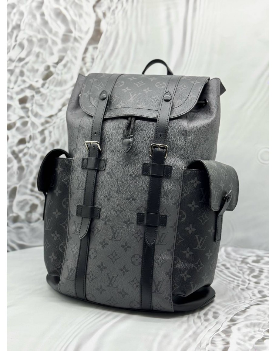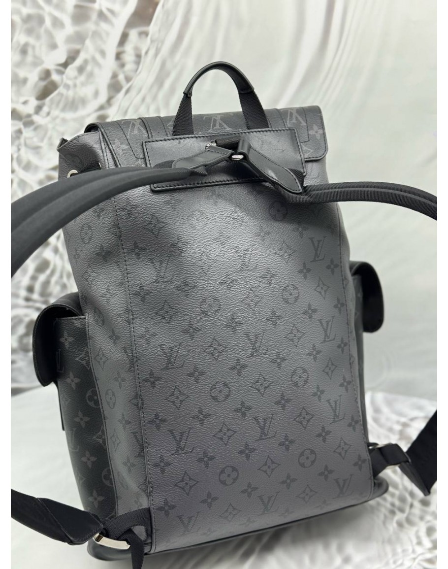 MICROCHIP LOUIS VUITTON CHRISTOPHER MM BACKPACK IN BLACK AND GREY MONOGRAM ECLIPSE CANVAS WITH LEATHER