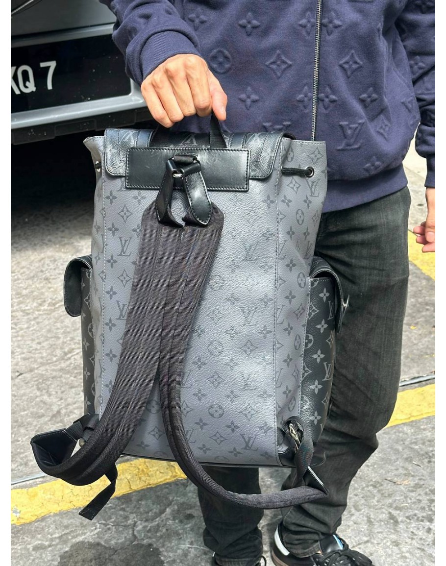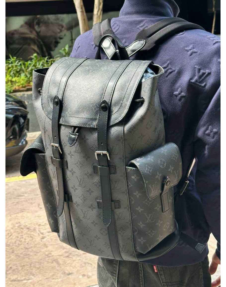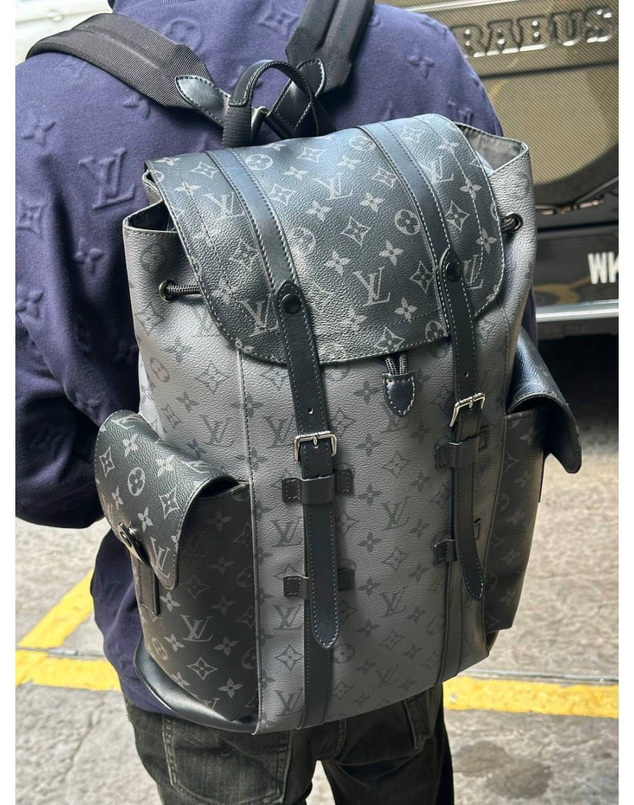 MICROCHIP LOUIS VUITTON CHRISTOPHER MM BACKPACK IN BLACK AND GREY MONOGRAM ECLIPSE CANVAS WITH LEATHER